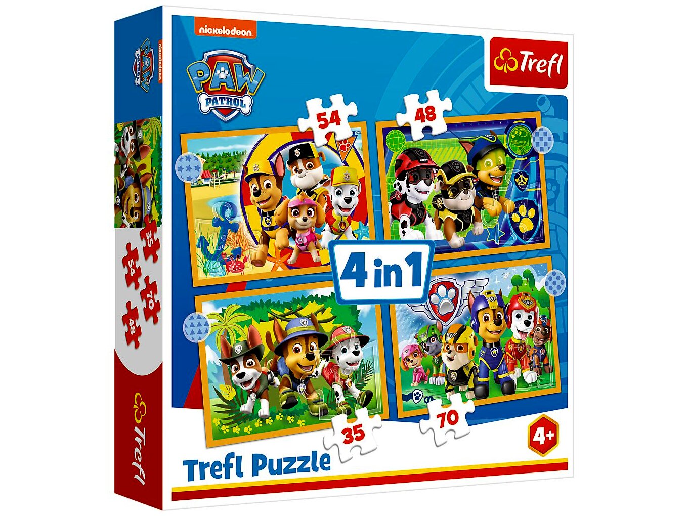 Válj igazi puzzlemesterré a Trefl Mancs Őrjárat vakáció - 4 az 1-ben puzzle készlettel! Ez a különleges szett nem csak egy, hanem négy különböző puzzle-t tartalmaz, melyek mind a gyerekek által kedvelt Mancs Őrjárat szereplőivel díszítettek. Kiváló választás mind a kisebbeknek, mind a nagyobbaknak, hiszen a változatos darabszámú kirakók különféle kihívásokat rejtenek.