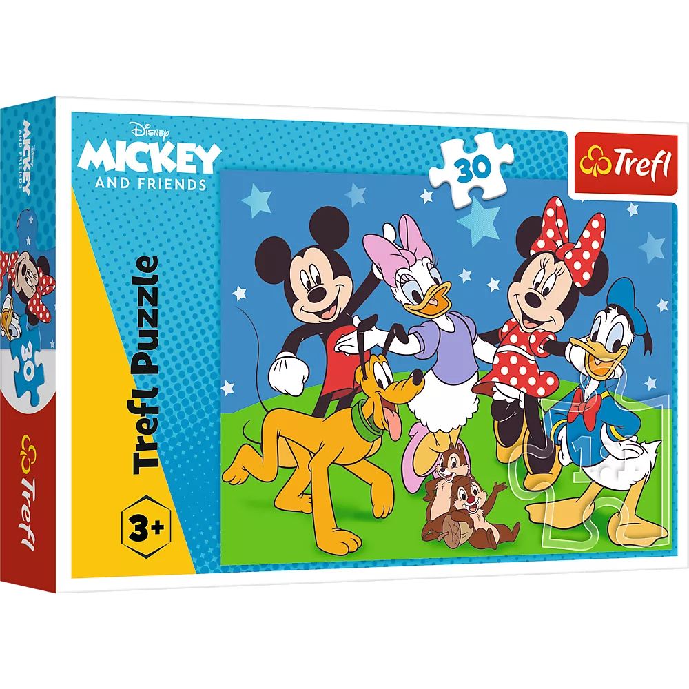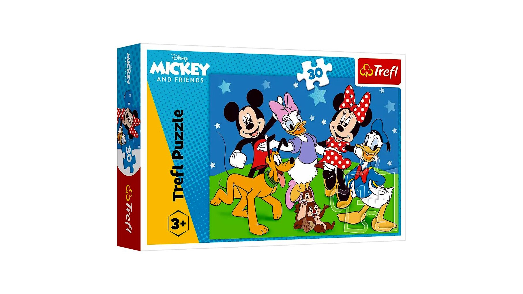 A Trefl Mickey egér és barátai 30 darabos puzzle egy csodálatos lehetőség a gyerekek számára, hogy szórakozás közben fejlődjenek. A puzzle Mickey egeret és kedves barátait ábrázolja, amelyek garantáltan minden kisgyermek arcára mosolyt csalnak.