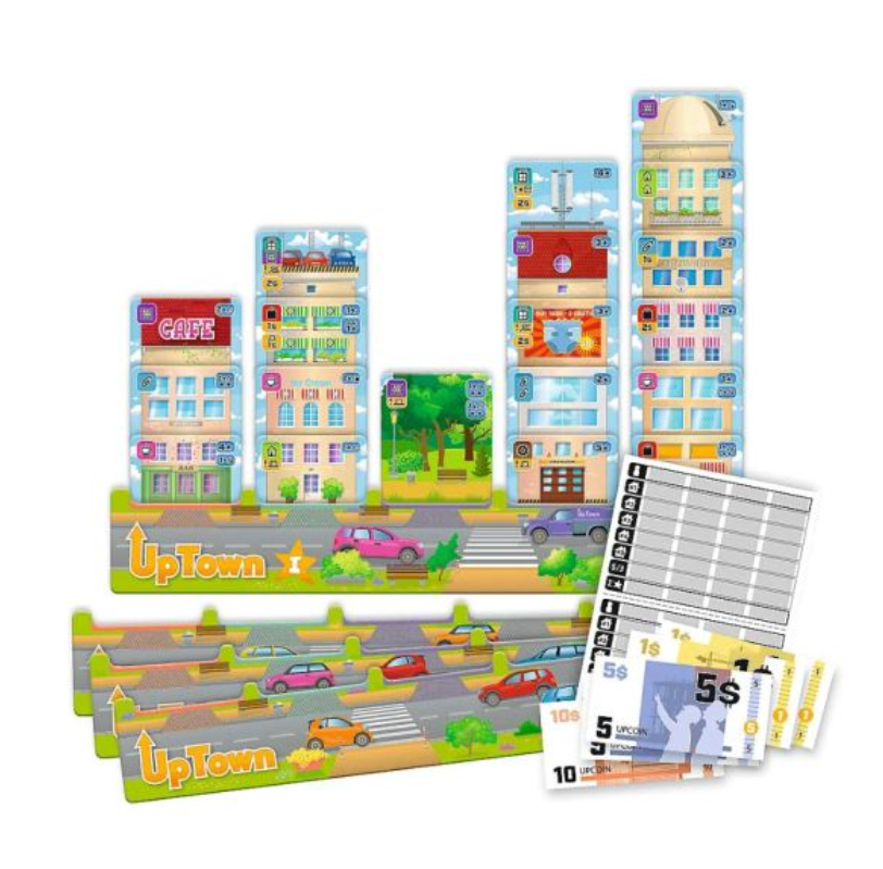Az Uptown társasjátékkal a gyerekek létrehozhatják a város legrangosabb utcáját. A játékosok felvirágoztathatják az utcákat az egyre magasabb épületekkel, amelyek így népesebbek és zajosabbak leszek. A város legnagyobb fejlesztőinek képviselőiként egy szokatlan versenyben vehettek részt. Aki a legjobb, legrangosabb utcát tervezi, az kap szerződést az egész külváros megépítésére. A játékban a projektkártyákkal épülhetnek fel házak, irodaházak és szolgáltató központok. A játékszabályok lehetővé teszik az ügyes vásárlást, a terveket és a riválisok épületein való kártyázást.