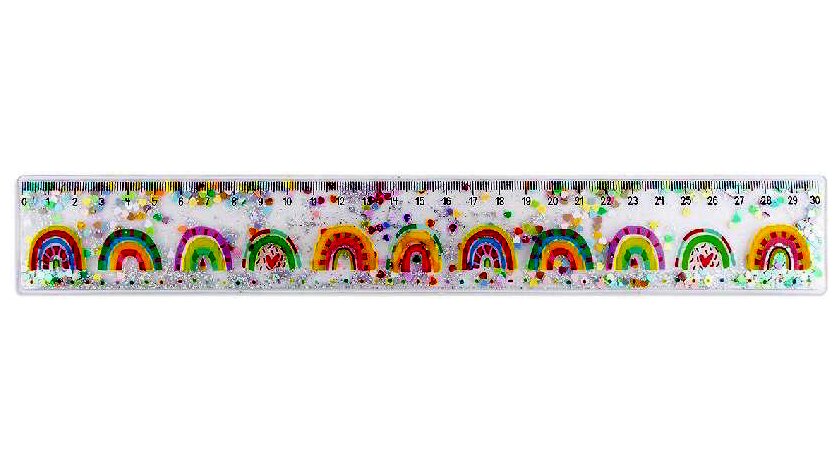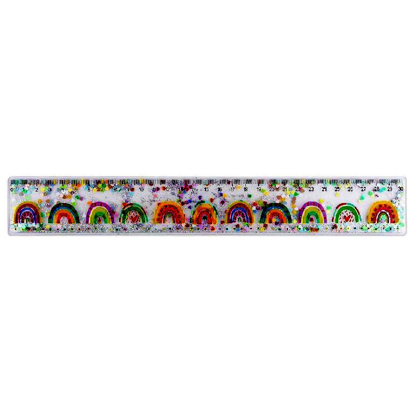 A vonalzó belsejében, csillámok és szívecskék mozognak Átlátszó, hajlítható vonalzó