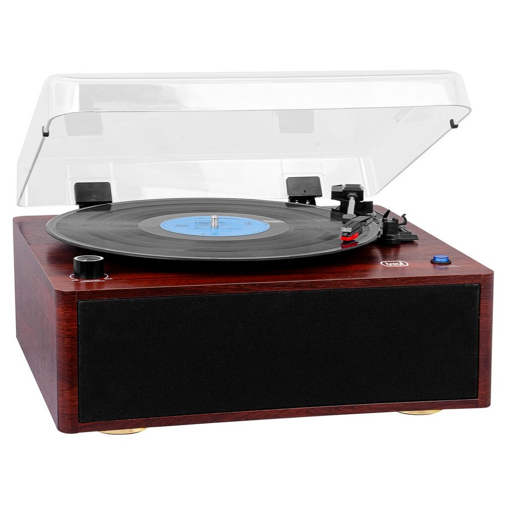 A Trevi TT 1030 BT lemezjátszó a régi idők varázsát idézi modern technológiával ötvözve. Az eszköz masszív, barna fa háza eleganciát és időtállóságot sugároz, tökéletes dísze lehet bármely lakásnak. Az integrált hangszórók és a Bluetooth funkcionalitás pedig biztosítják, hogy a zenei élvezet teljeskörű és kényelmes legyen, akár otthonában, akár baráti összejöveteleken.