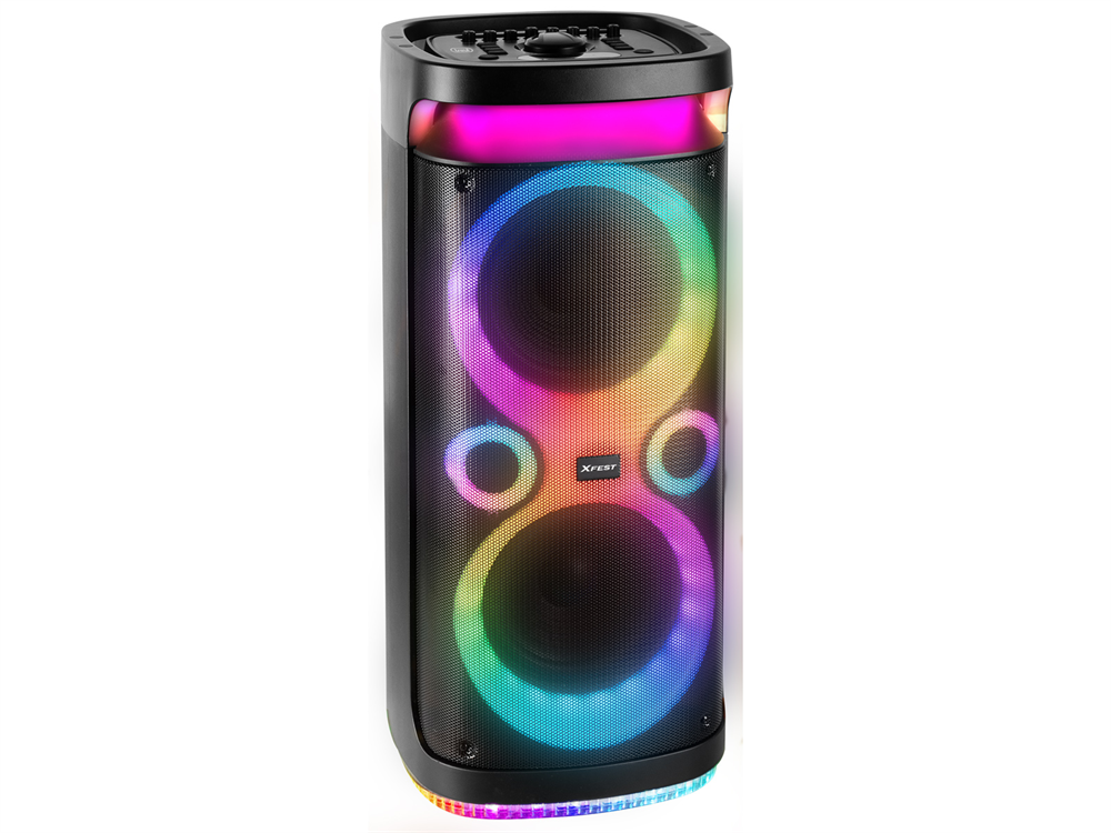 Az RGB fények különleges hangulatot kölcsönöznek minden bulihoz, míg a vezeték nélküli csatlakozás biztosítja a könnyű használatot okostelefonokkal és más kompatibilis eszközökkel. A beépített kerekek és fogantyú révén a hangszórót könnyedén hordozhatja bárhová.