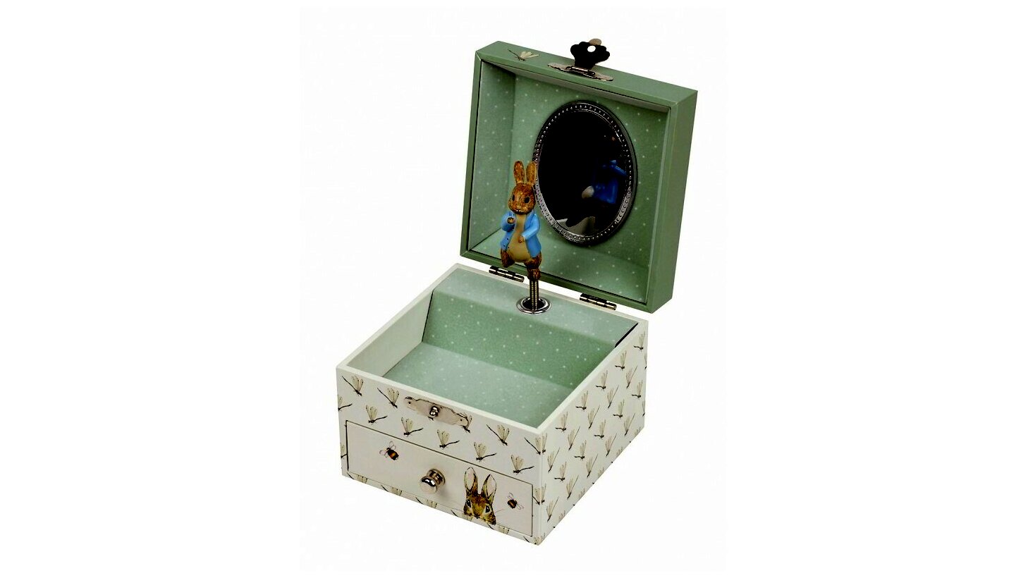 - Működtesse a hajtókart, és Pierre Lapin figurája varázslatosan életre kel a zene hangjára