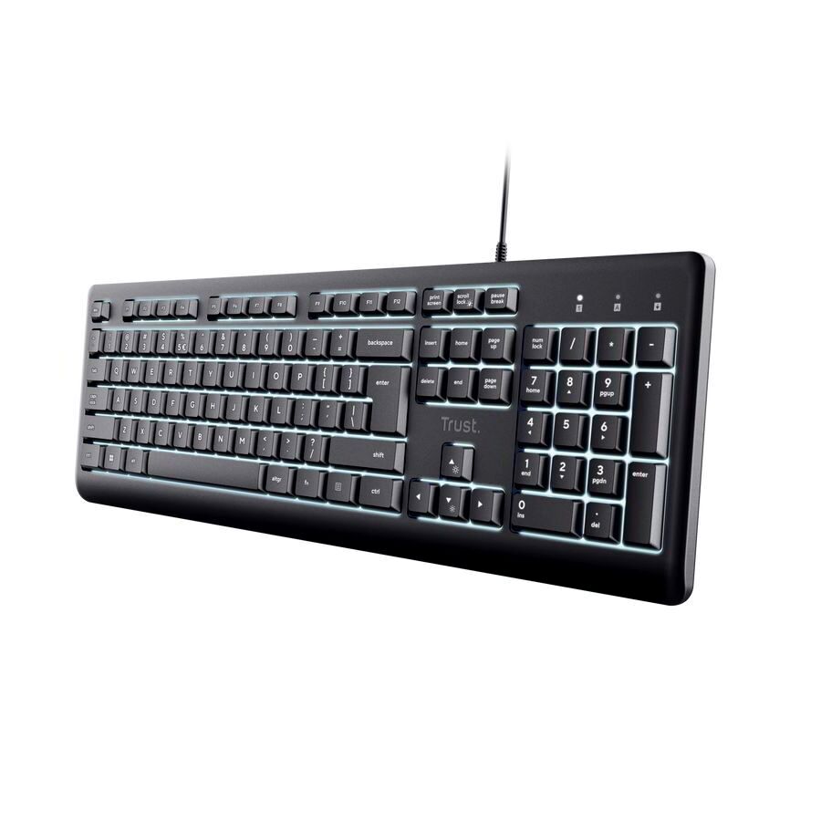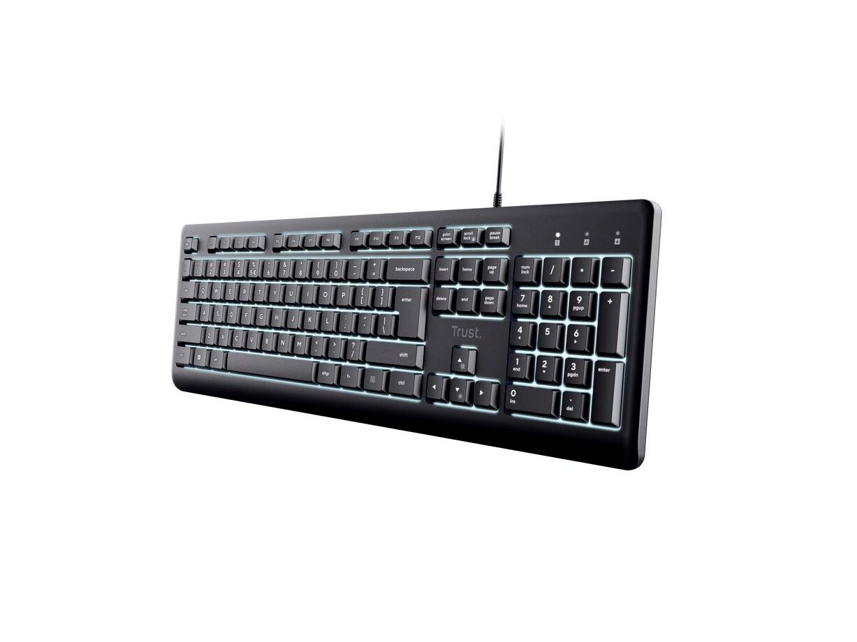 A Trust világított, teljes méretű vezetékes billentyűzete ideális választás mindennapi irodai munkához, otthoni felhasználáshoz és esti gépeléshez. Csendes billentyűi nem zavarják a környezetet, a LED háttérvilágítás pedig gyenge fényviszonyok között is jól olvashatóvá teszi a karaktereket. A praktikus, strapabíró kialakítás, a kiöntésálló felépítés és a modern USB-C csatlakozás gondtalan használatot biztosít.