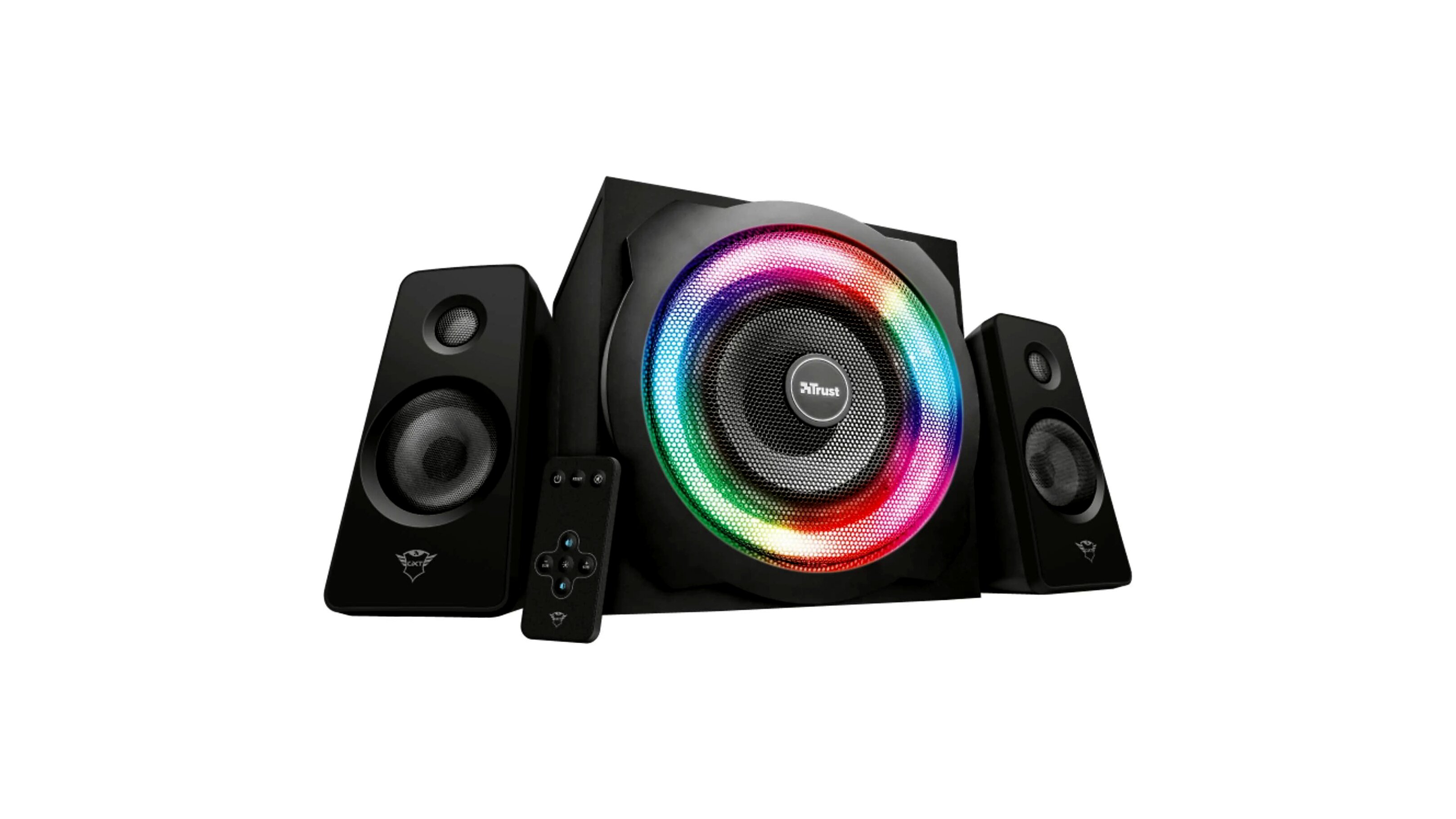 A Trust GXT 629 Tytan egyszerű kezelhetőséget kínál a mellékelt távirányítóval, így könnyedén szabályozhatod a hangerőt és a basszust is anélkül, hogy fel kellene állnod. A beépített LED világítás pedig lenyűgözően fokozza az esztétikai élményt, különösen gyenge fényviszonyok között.