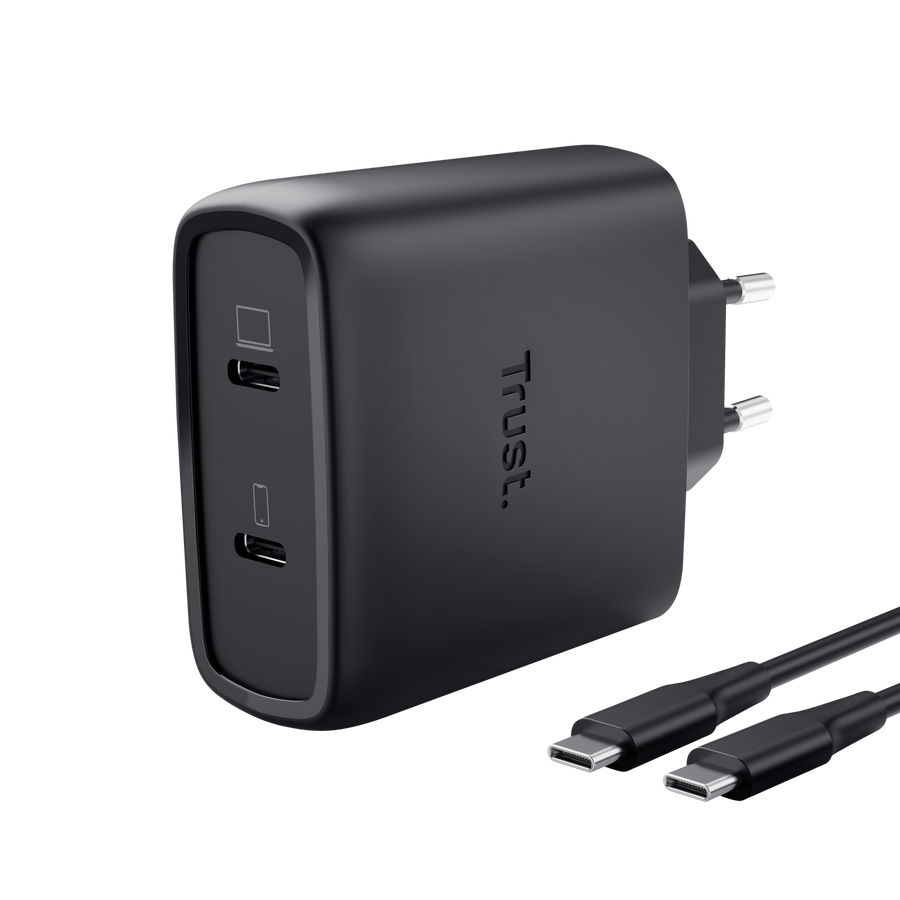 A Trust prémium kategóriás GaN technológiás hálózati gyorstöltője ideális megoldás, ha egyetlen eszközzel szeretnéd laptopodat, táblagépeden és okostelefonodat is villámgyorsan és biztonságosan feltölteni. A csomagban található 2 méteres USB-C kábelnek köszönhetően azonnal használatra kész, és rugalmasan elérheted vele a készülékeidet, akár nehezebben hozzáférhető konnektorból is.