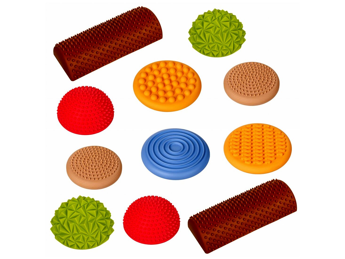 • 5 db érzékszervi korong – nagyobb felület, változatos elrendezéshez, szenzoros ösvény kialakításához