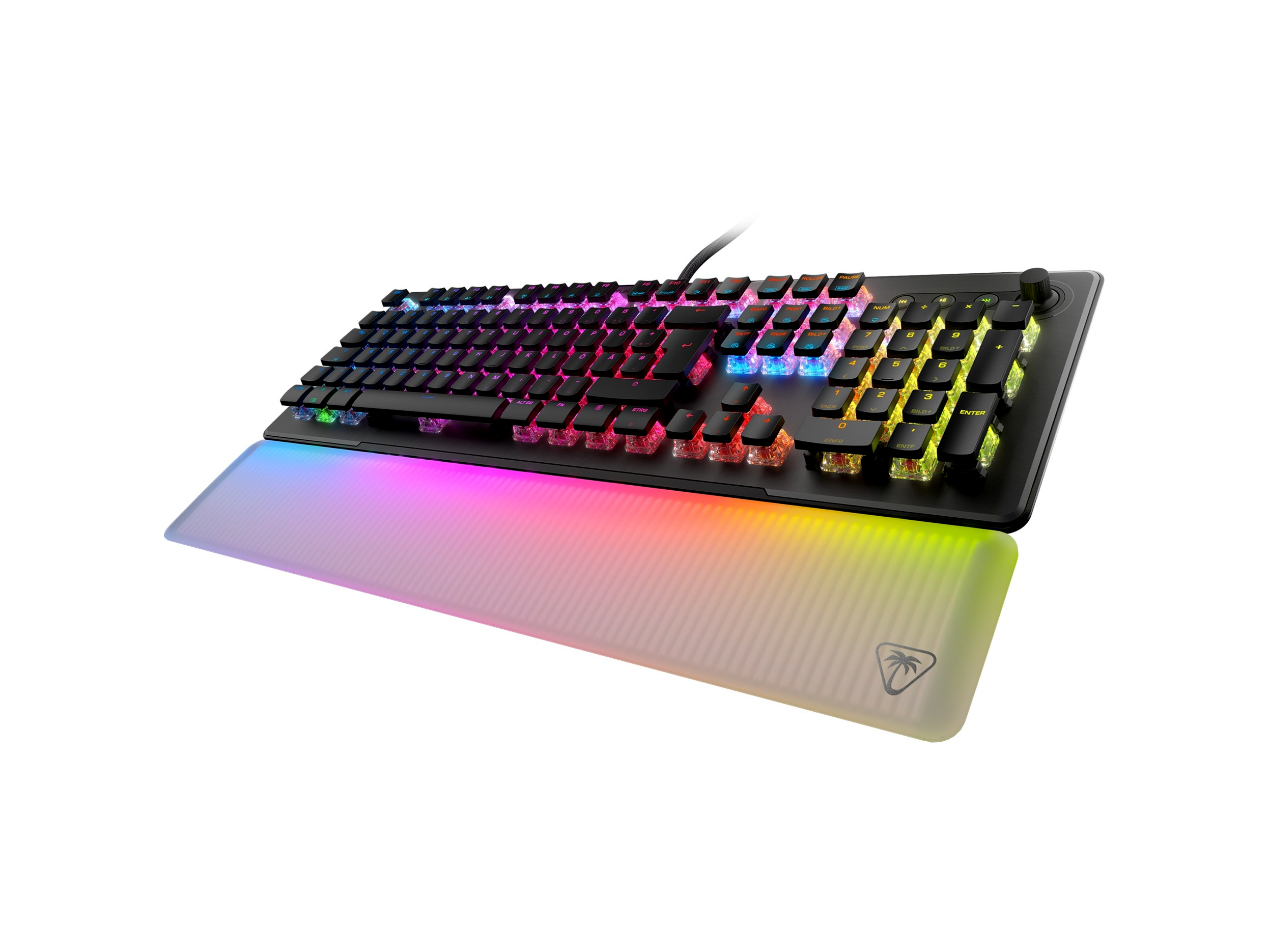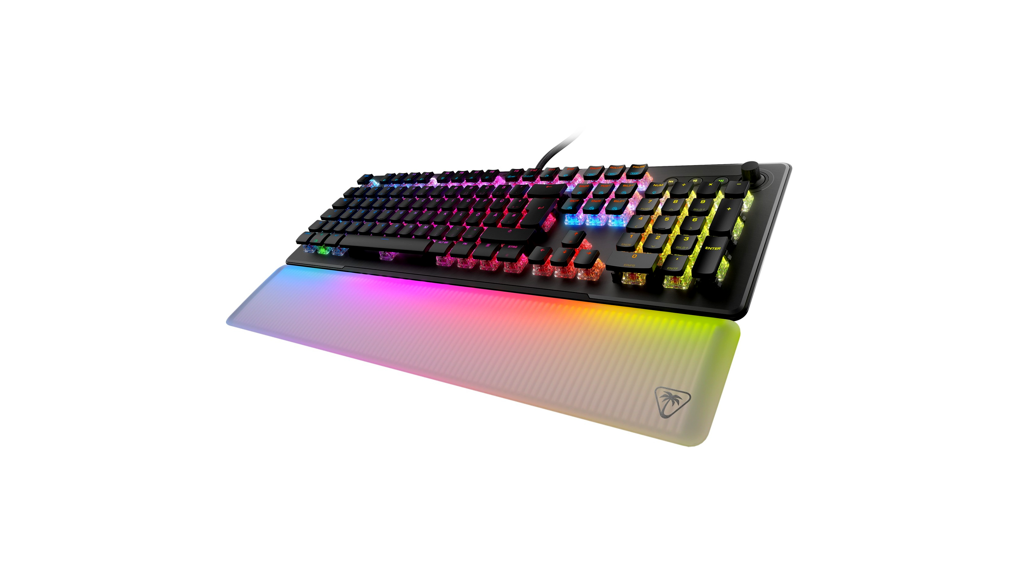 A teljes felületet beborító RGB világítás lenyűgöző fényshow-t biztosít, amelyet a félig áttetsző csuklótámasz még látványosabbá tesz. Az AIMO technológia dinamikusan reagál a használatra, és más AIMO-kompatibilis Turtle Beach eszközökkel szinkronizálható, így egységes, profi gamer megjelenést hozhatsz létre az asztalodon. A puha, szilikon csuklótámasz nemcsak kényelmet nyújt hosszú játékmaratonok során, hanem egyedi, lebegő fényhatást is kelt a billentyűzet előtt.