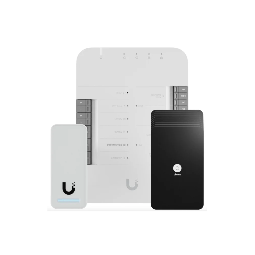 - 1x UniFi Access Door Hub: Ez az eszköz központi agyként működik, amely összeköti a beléptető rendszert a hálózattal, és integrált biztonsági protokollokat biztosít.
