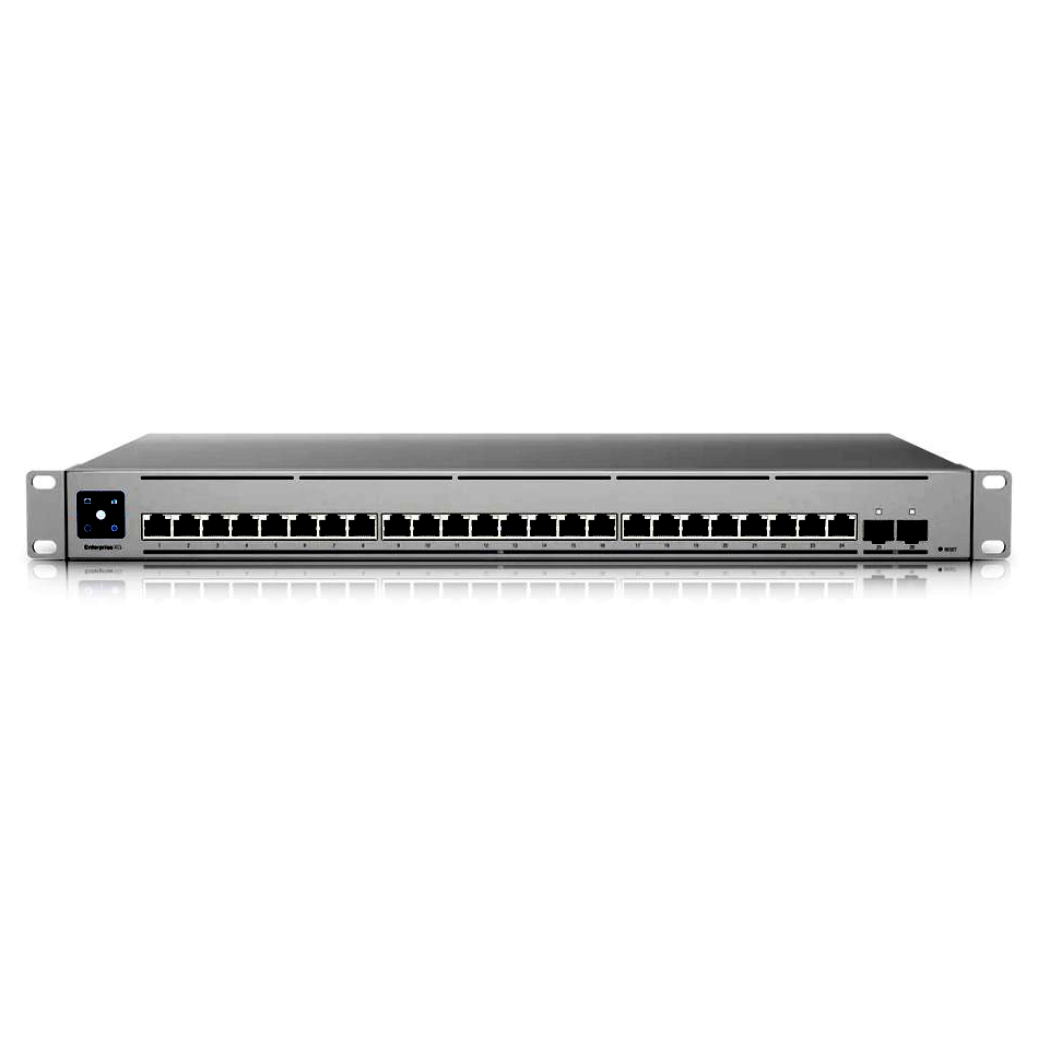 A Switch Enterprise XG 24 (USW Enterprise XG 24) egy teljesen felügyelt, több gigabites, Layer 3 switch (24) 10GbE RJ45 porttal és (2) 25G SFP28 porttal. Az USW Enterprise XG 24 egy 1,3 hüvelykes színes LCM érintőképernyővel is rendelkezik, amely tömören jeleníti meg a legfontosabb rendszer- és csatlakozási információkat.