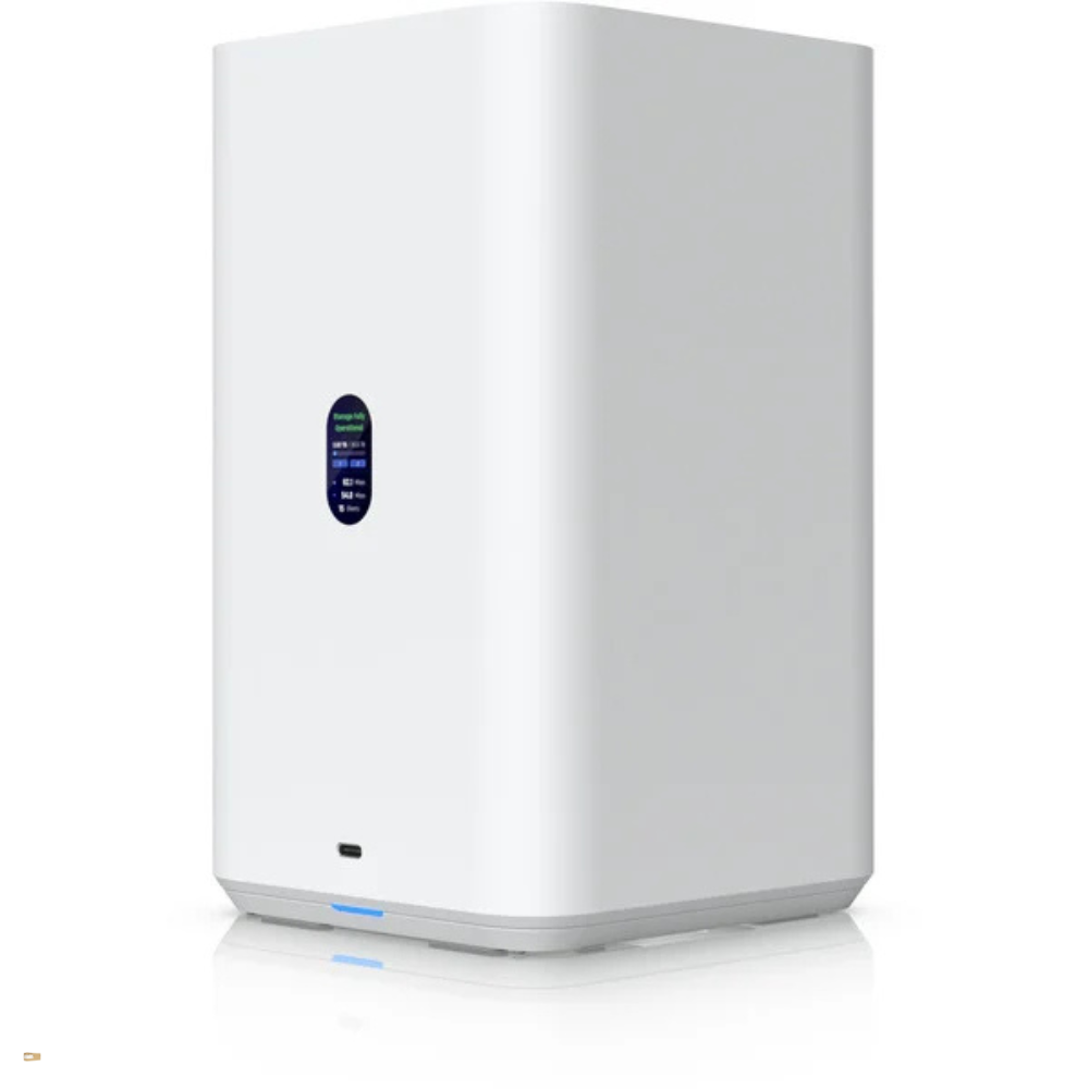 Az 1,47"-es színes LCD kijelző az előlapon gyors áttekintést ad a rendszer állapotáról, hálózati információkról, kapacitásról vagy figyelmeztetésekről. A rendszer LED-ek azonnali visszajelzést adnak a működésről, így probléma esetén gyorsan beazonosítható a hiba. A beépített Bluetooth 4.1 modul elősegíti a kezdeti beállítást és az UniFi környezetbe történő integrációt.