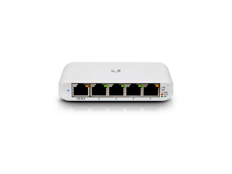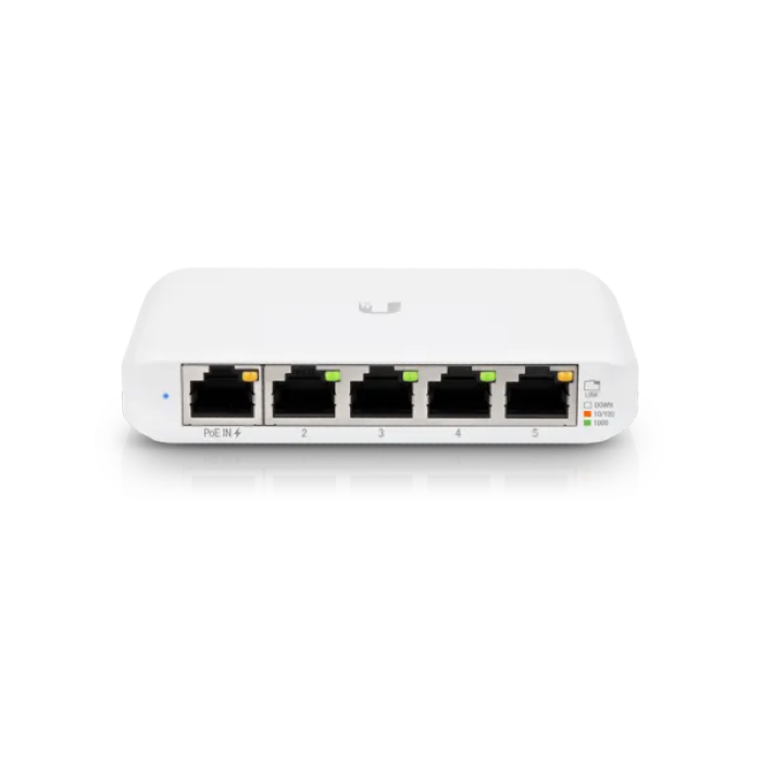Kompakt, öt portos, Layer 2 switch, amely PoE vagy 5 V-os USB-C adapterrel táplálható.