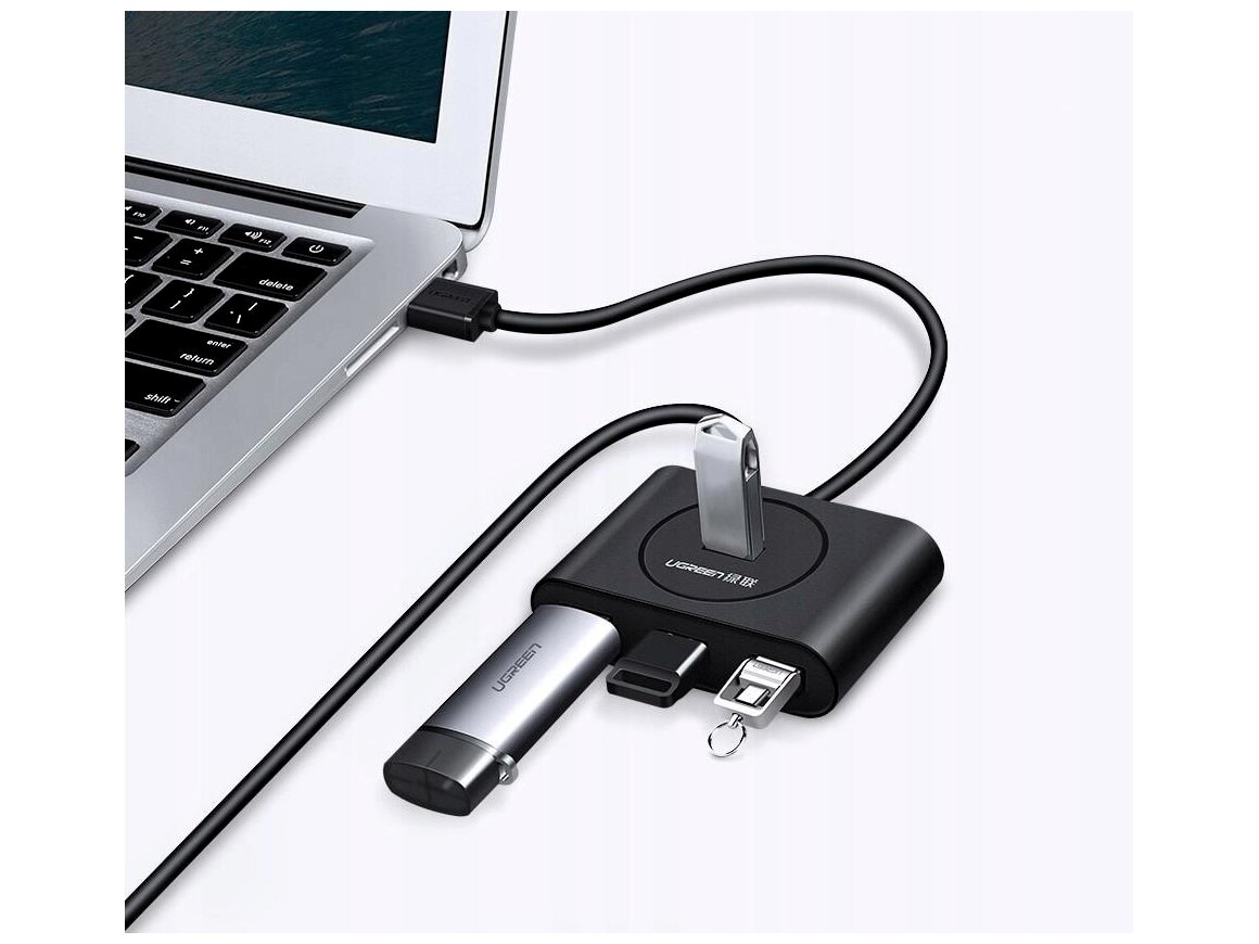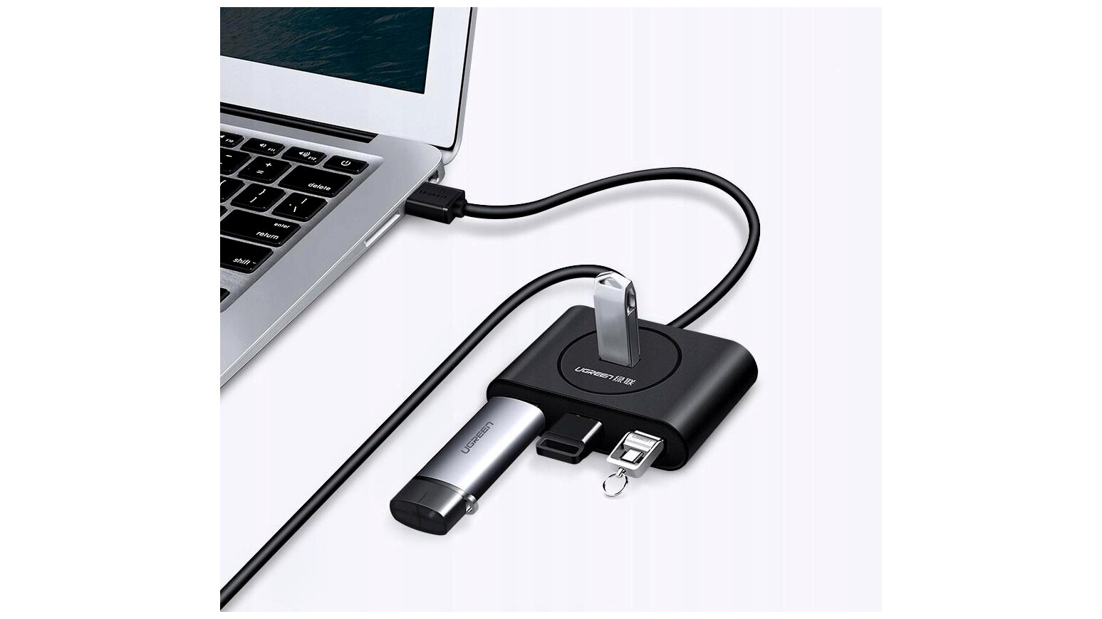 UGREEN USB 3.0 Hub 4 portos USB 3 Data Hub hordozható szupersebességű MacBook MacBook Air, Mac Mini és Microsoft Surface, USB Hub (fekete)