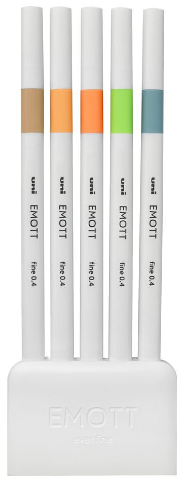 A Uni Emott No.6 Nature Colors 5 darabos tűfilc készlet azoknak készült, akik a letisztult, rendezett megjelenést és a finom részleteket részesítik előnyben. A 0,4 mm-es tűhegy precíz, vékony vonalakat biztosít, így tökéletes választás jegyzeteléshez, rajzoláshoz, bullet journalhoz, skiccekhez, vázlatokhoz és színezéshez is. A természet ihlette, vegyes színű készlet különösen harmonikus, lágy tónusokat kínál.