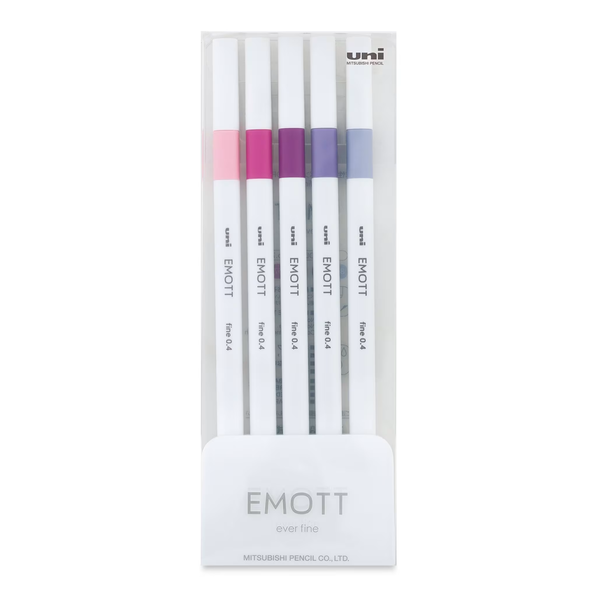 A Uni Emott No.7 Floral Colors 0,4 mm tűfilc készlet azoknak készült, akik a mindennapi jegyzetelést, rajzolást és kreatív alkotást szeretnék kifinomult, harmonikus színvilággal és kényelmes használattal ötvözni. Az 5 darabos, vegyes színű szett virágos árnyalataival különösen jól használható dekoráláshoz, kézíráshoz, bujó naplózáshoz, skicceléshez és illusztrációkhoz.