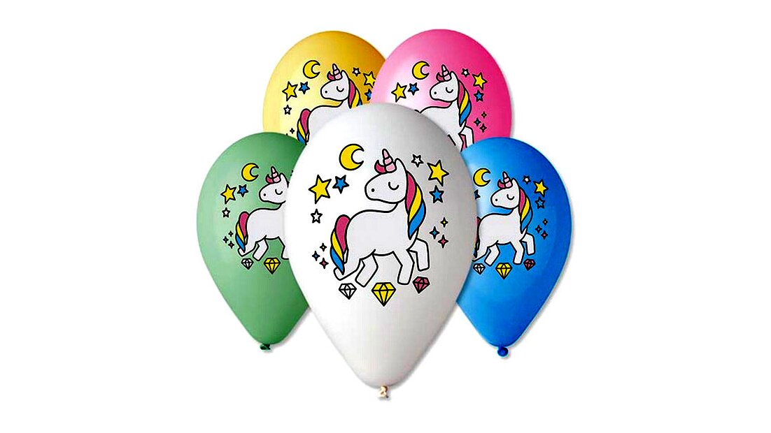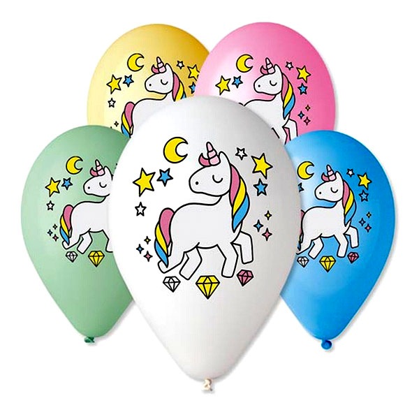 Gumiból készült, színes egyszarvú mintával ellátott lufik. A készlet 5 db lufit tartalmaz, ezekkel feldobhatod a saját vagy barátaid buliját! A lufik felfújt mérete: 30 cm.