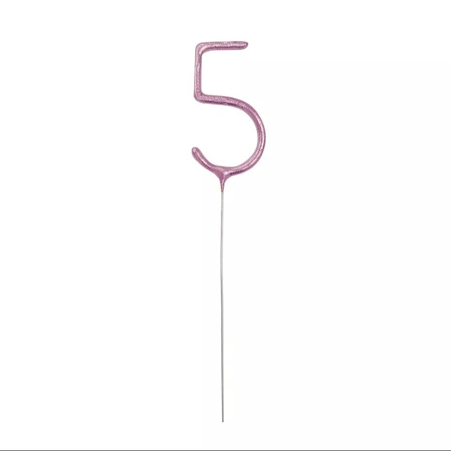 Különleges Számos Torta Csillagszóró 18cm – 5-ös szám, Pink