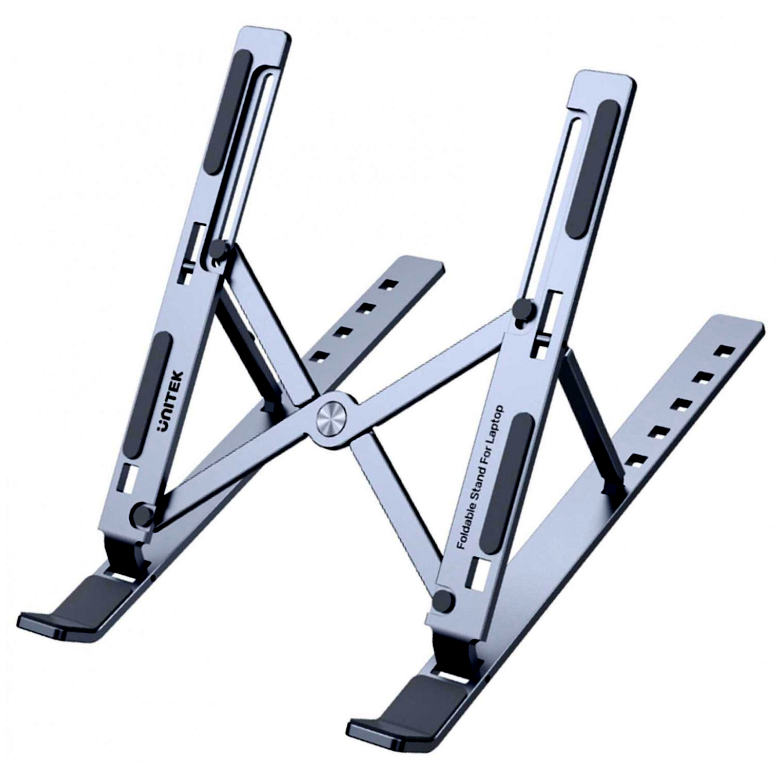 Összecsukható és hordozható laptop állvány mely 6 állítható dőlésszöggel, kiválóan alkalmas a nyak és a nyaki gerinc kényelmének megteremtésére olvasás és gépelés közben