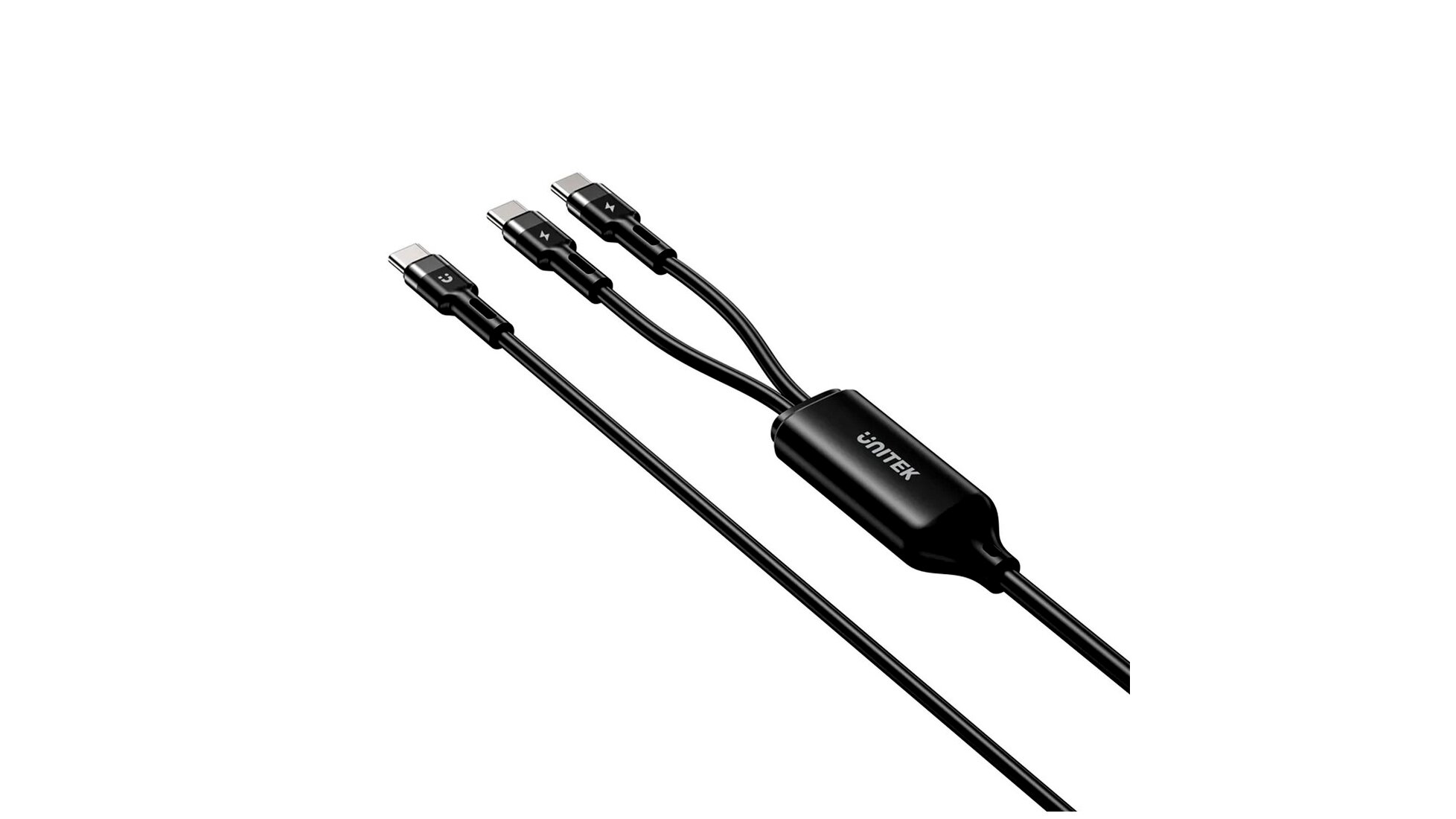 • 2 az 1-ben kialakítás: egy USB‑C csatlakozó a töltő felé, két USB‑C csatlakozó az eszközök felé, így egyetlen töltőt több eszközhöz használhatsz.