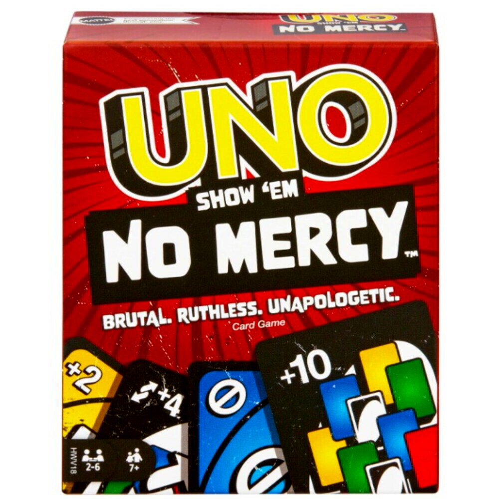 Az UNO 'Nincs Kegyelem' az UNO kártyajáték legújabb, legbrutálisabb változata, amely a klasszikus játékot új szintekre emeli. Ebben a verzióban a játékosok nem csak a kártyáiktól próbálnak megszabadulni, hanem a többieket is eliminálják, hogy egyedül maradjanak a játék végén.