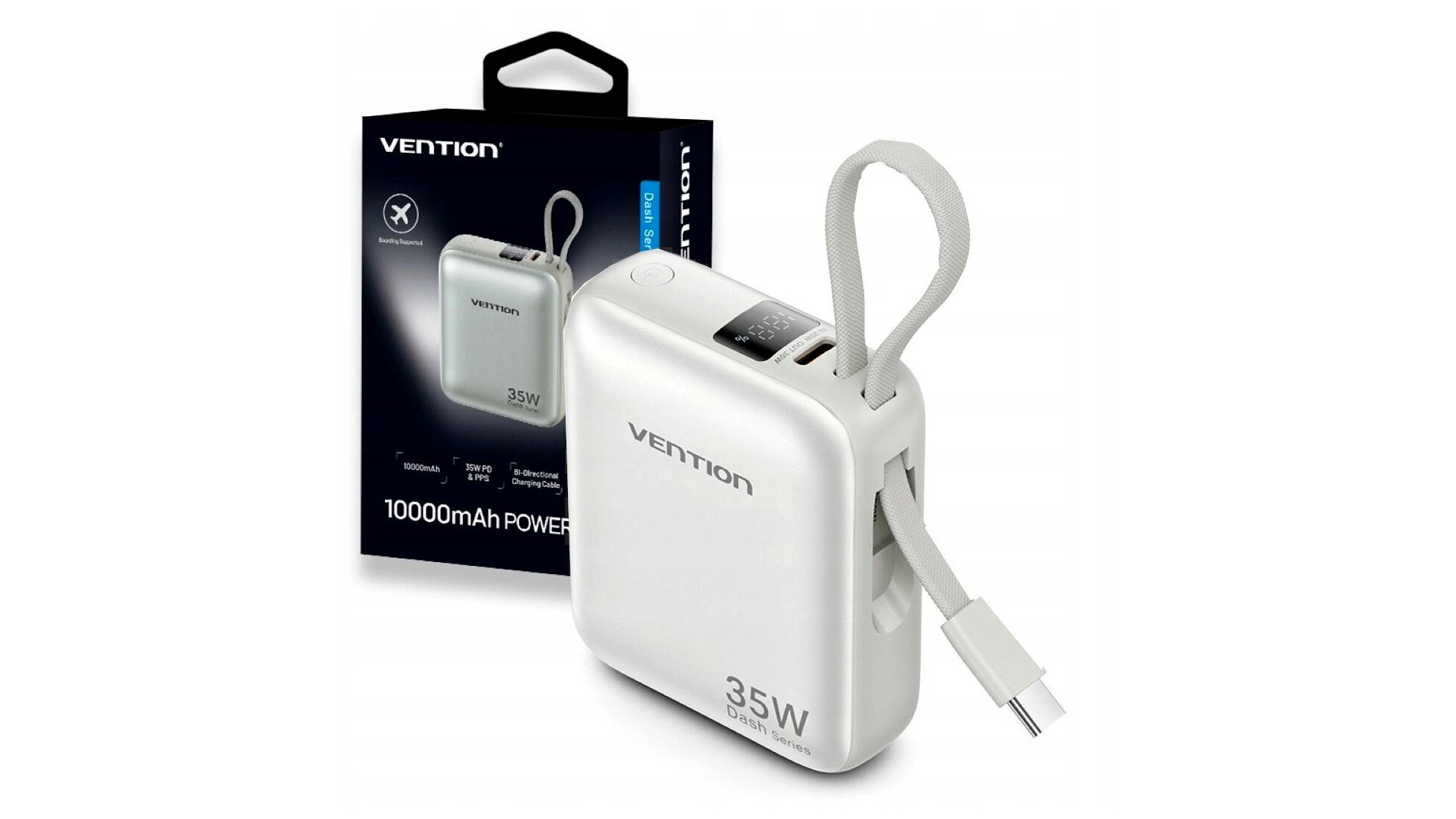 Ha egy megbízható, gyors és elegáns megoldást keresel készülékeid napi energiaellátására, ez a USB‑C kábellel integrált, 10 000 mAh-s, 35 W-os power bank praktikus, modern választás.