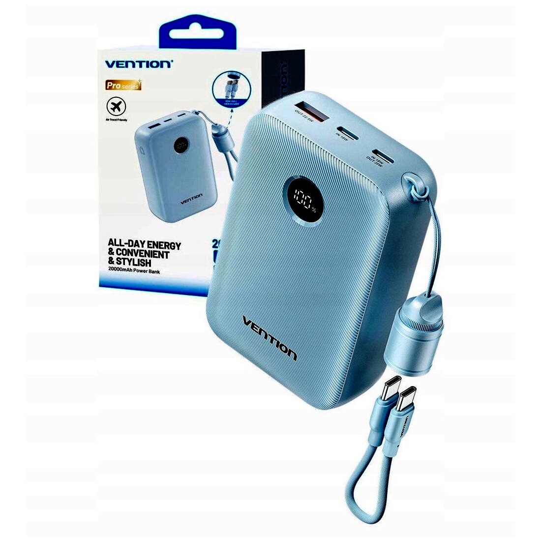 A Vention 20000 mAh-s nagy teljesítményű külső akkumulátora ideális társ mindennapi használathoz, utazáshoz, munkához és tanuláshoz. Kompakt mérete ellenére komoly energiatartalékot rejt, így több eszközt is biztonságosan tölthet anélkül, hogy konnektort kellene keresnie.
