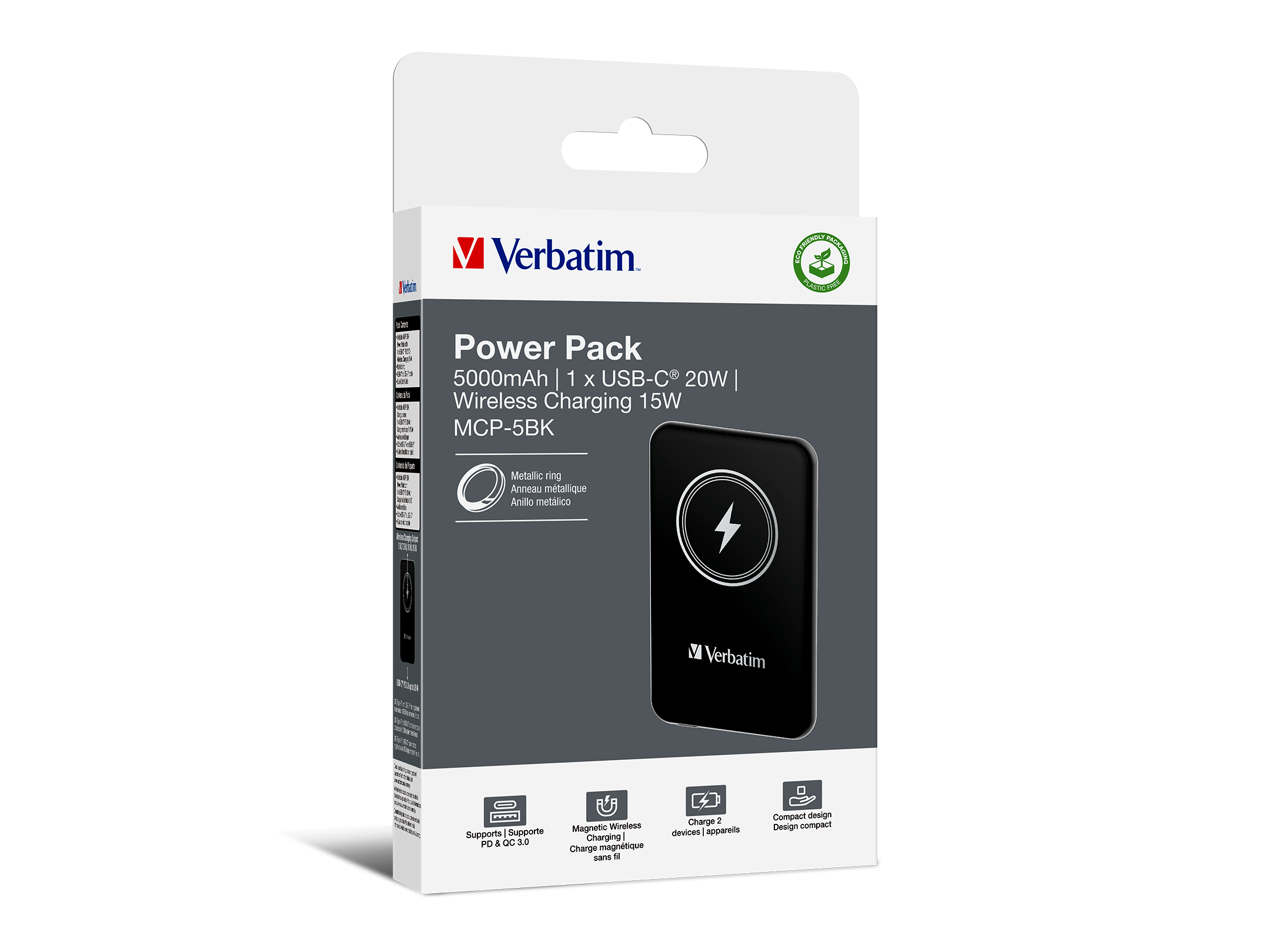 Verbatim MAG Charge 'n' Go Powerbank 5000mAh 20W (1,67 - 2.4A / 5-9V) - Fekete
