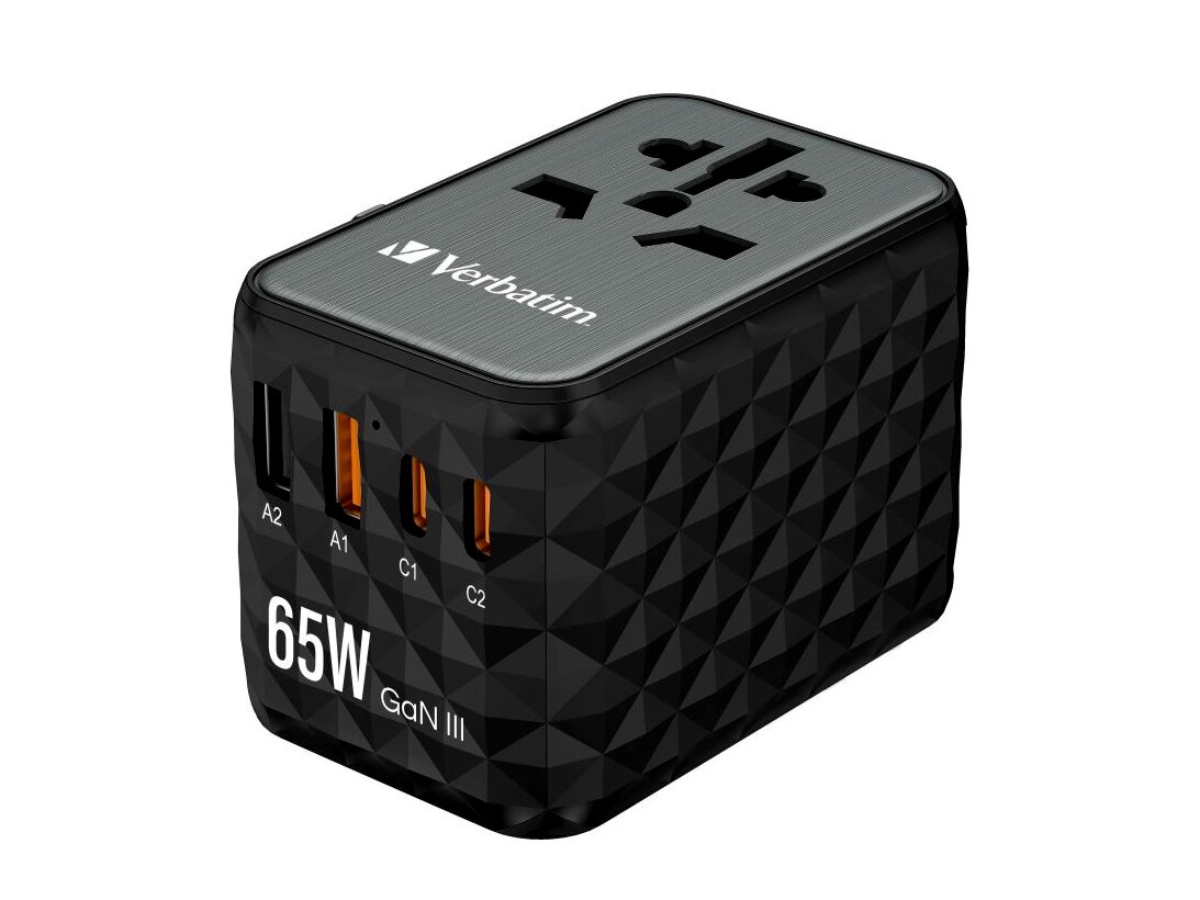 A kompakt és nagy teljesítményű Verbatim GaN III univerzális utazási adapter lehetővé teszi öt eszköz egyidejű töltését a hálózati csatlakozóaljzaton és a két USB-C és két USB-A porton keresztül.A négy USB-port közül három ultragyors töltést biztosít. A két USB-C port támogatja a Power Delivery 3.0-t (PPS támogatással) és a Quick Charge 4+ kimenetet, egyenként akár 65 W-ig, egy USB-A port pedig támogatja a Quick Charge 3.0 kimenetet, akár 60 W-ig. A másik USB-A port normál kimenete akár 5 W.