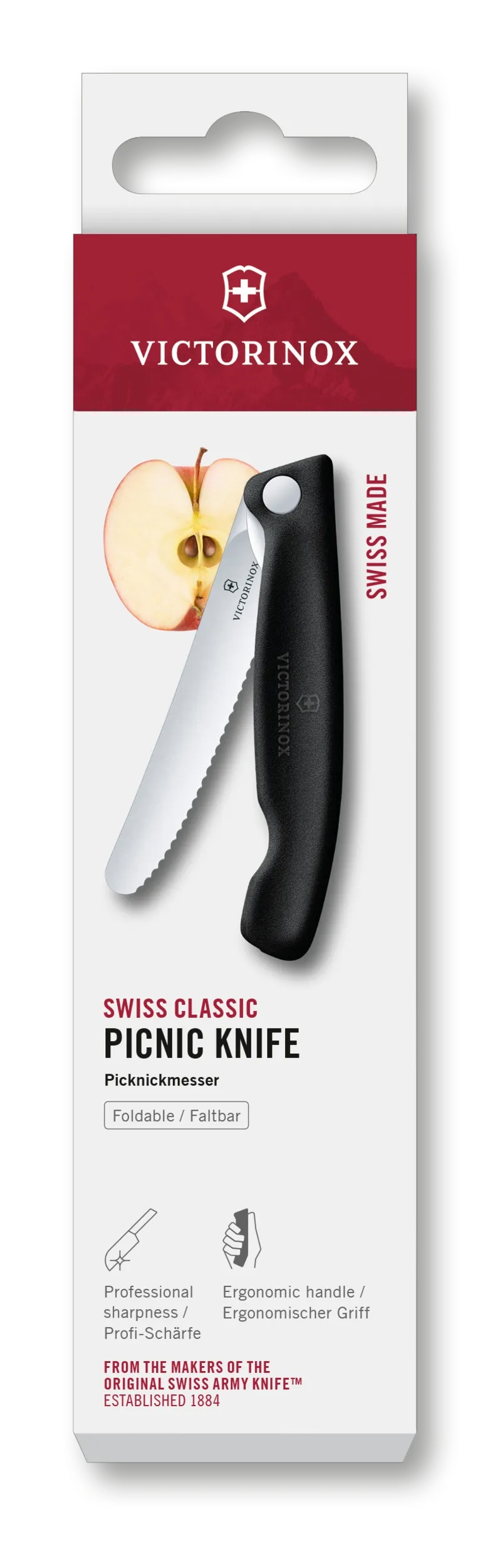 A Victorinox Swiss Classic piknikkés egy valódi mindenes, amely minimalista dizájnjával és extra karakterével gyorsan a kedvenc társaddá válik útközben. Precíz fogazott éle és sokoldalúsága miatt bármilyen gyümölcsöt és zöldséget könnyedén vághatsz vele, legyen szó konyhai használatról, erdei piknikről vagy hegyi túráról.