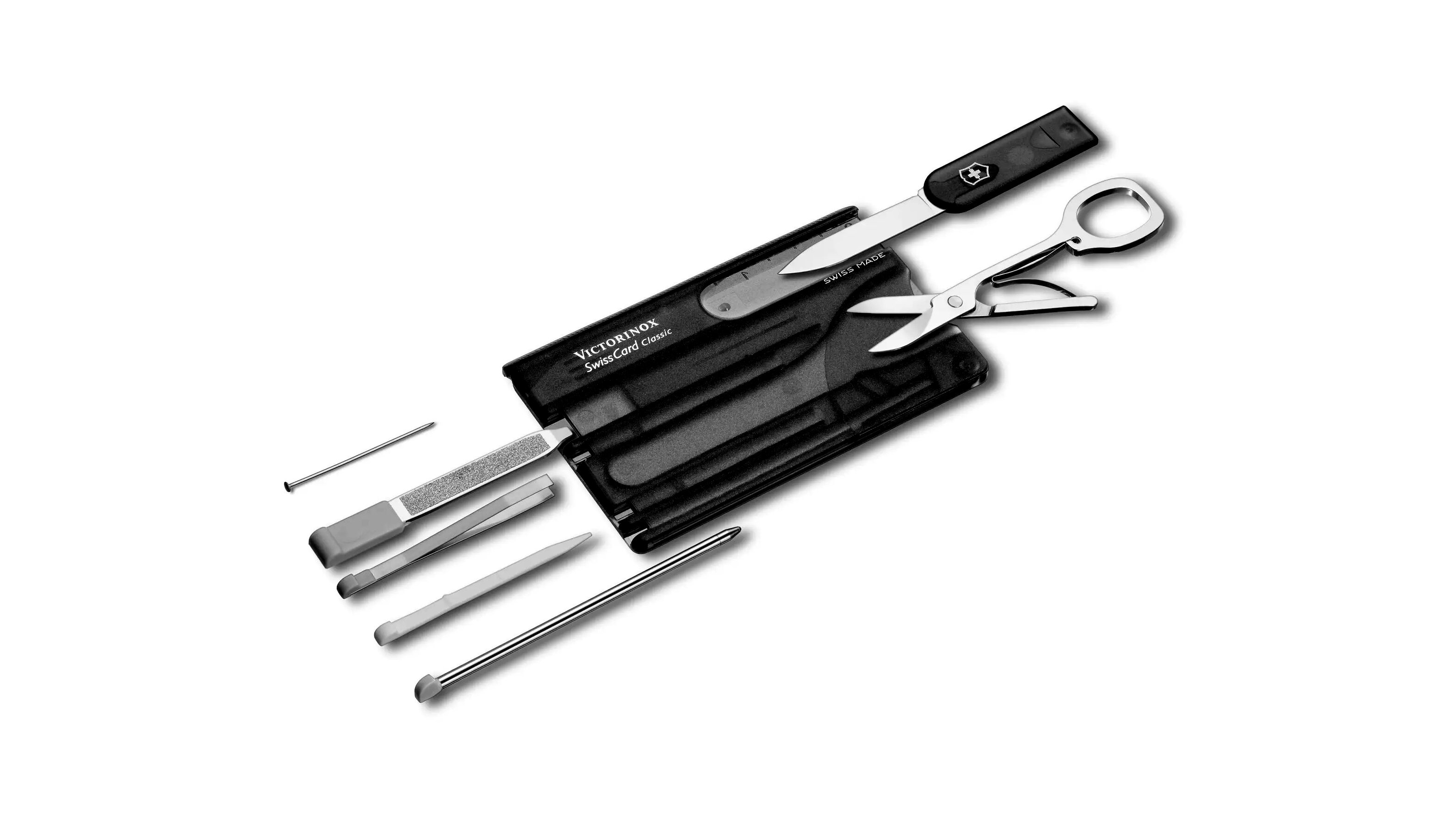 Meg fog lepődni, mennyi eszközt pakoltunk a Swiss Cardba. És meg fog lepődni, hogy milyen gyakran van szüksége egy ilyen szerszámra. Okos, díjnyertes dizájnjának és hihetetlen funkcionalitásának köszönhetően pedig minden alkalommal élvezni fogja, amikor ki kell vennie. Csak ne lepődjön meg, ha a pénztárcájában lévő összes többi elem féltékeny lesz.