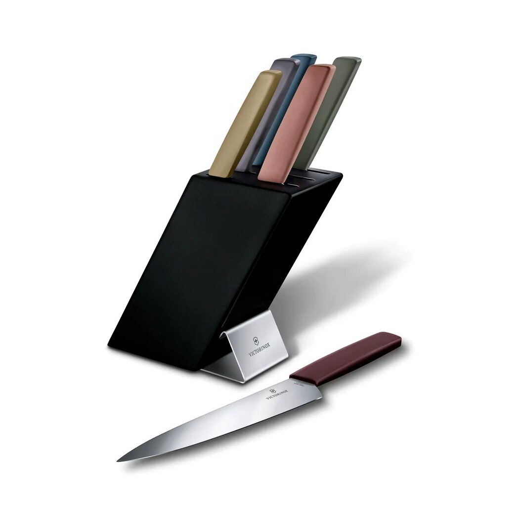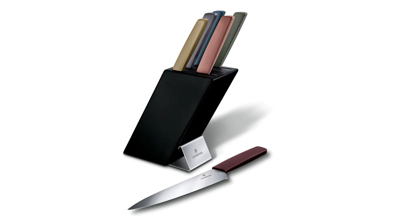 A Swiss Modern Knife Block kellemes, kifinomult élt kölcsönöz minden munkalapnak. A gravírozott Victorinox logó jellegzetes részletet kölcsönöz. Mind a hat pengével töltve vagy üresen kapható. Fektessen be egy kis hűvös konyhába. Minden szakács büszkesége és öröme a késgyűjtemény. Tehát amikor eljött az ideje, hogy nagy teljesítményű evőeszközökre váltsunk, a Victorinox mindent tartalmaz egy olyan szakács számára, mint Ön. Konyhai és asztali késeink kiváló minőségűek és kevés karbantartást igényelnek, a legjobb anyagokkal és időtlen kialakítással. Késblokkjaink pedig tökéletes módja annak, hogy biztonságosan tároljuk őket, miközben kéznél tartjuk őket.