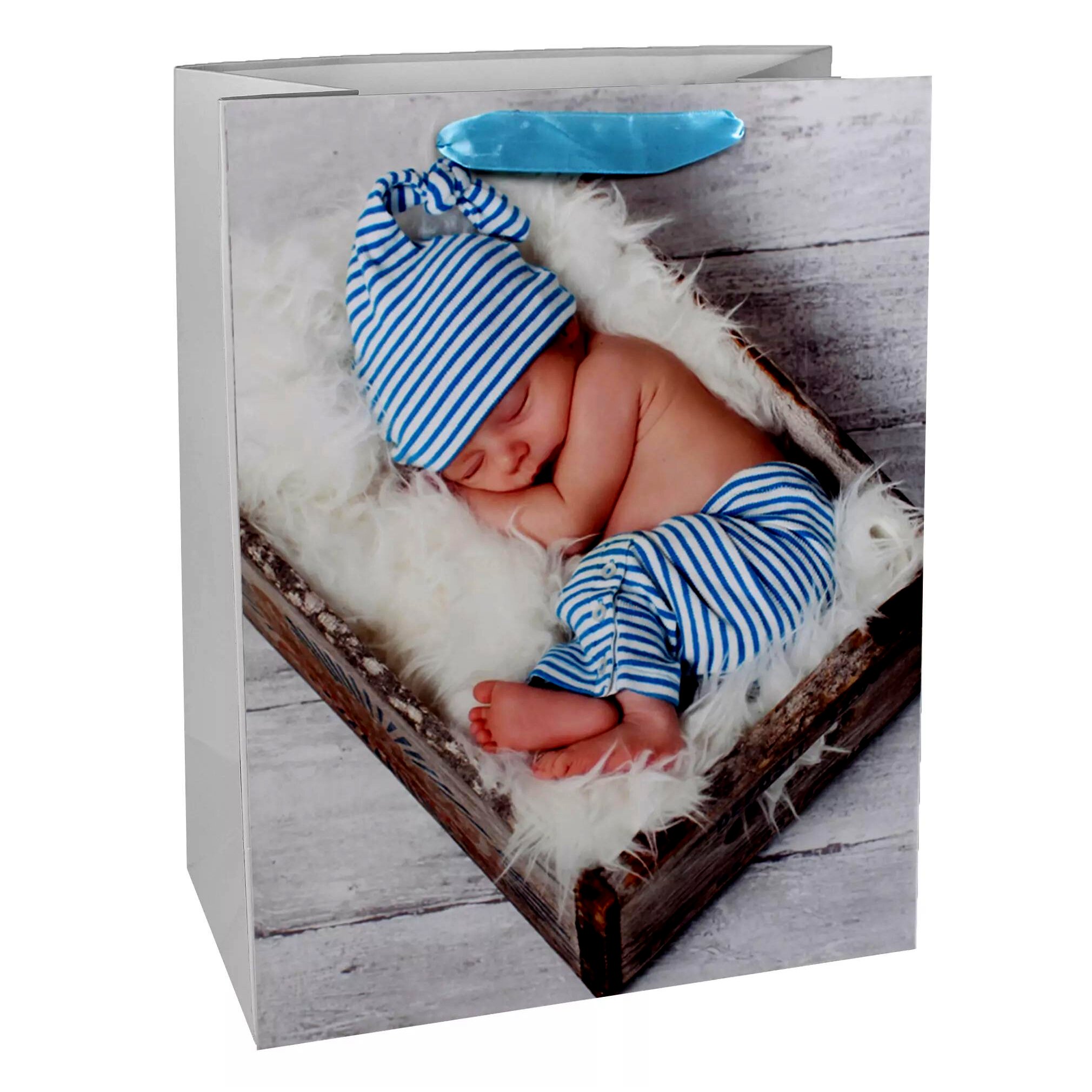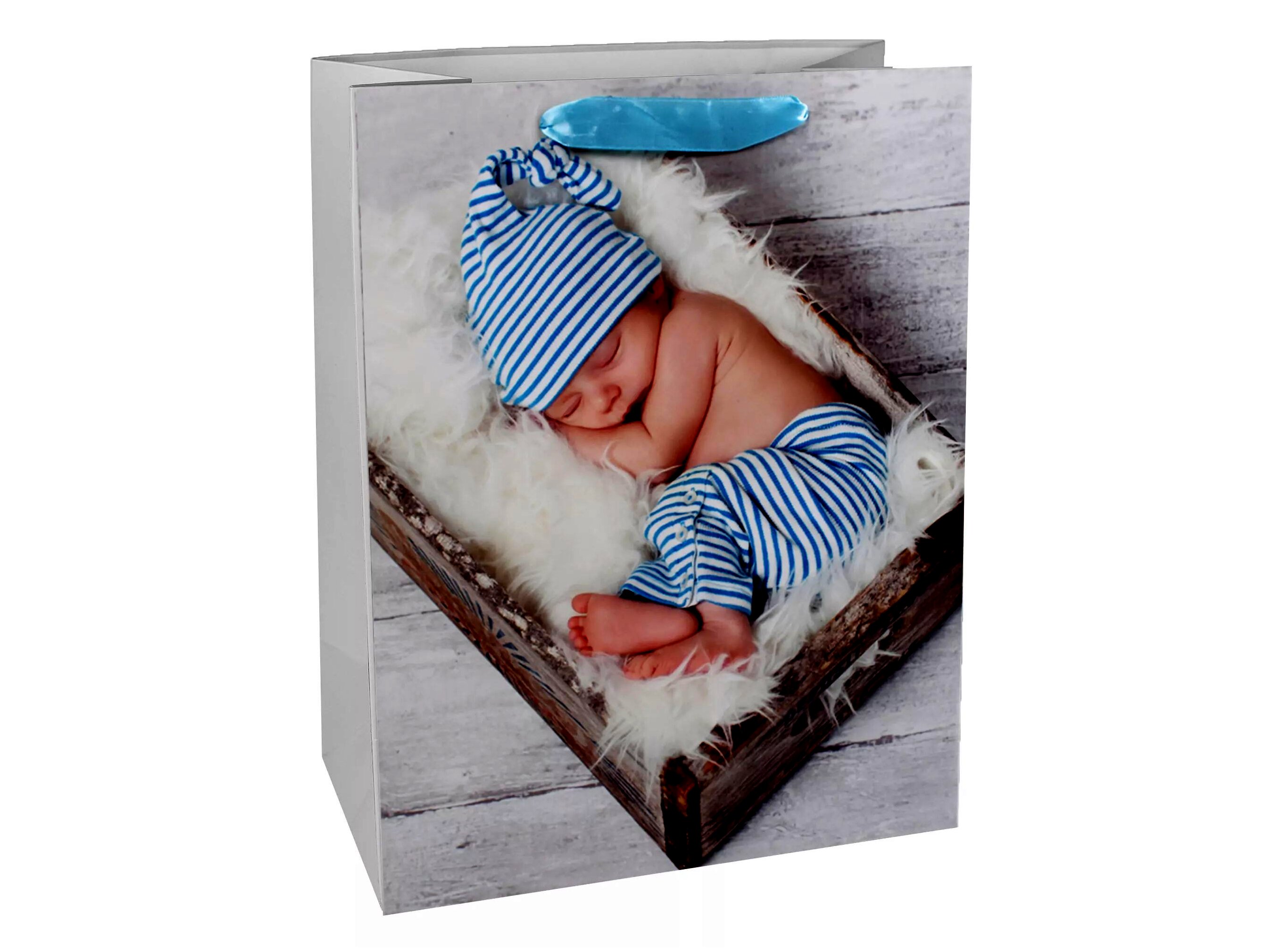 Ez a varázslatos világoskék babás ajándékzacskó tökéletes választás bármilyen babaváró ünnepségre vagy kisgyermek születésnapjára. Kifinomult dizájnjának köszönhetően bármilyen ajándékot stílusosan prezentálhat benne. A szürke szalagfülekkel könnyen hordozható és rendkívül praktikus.