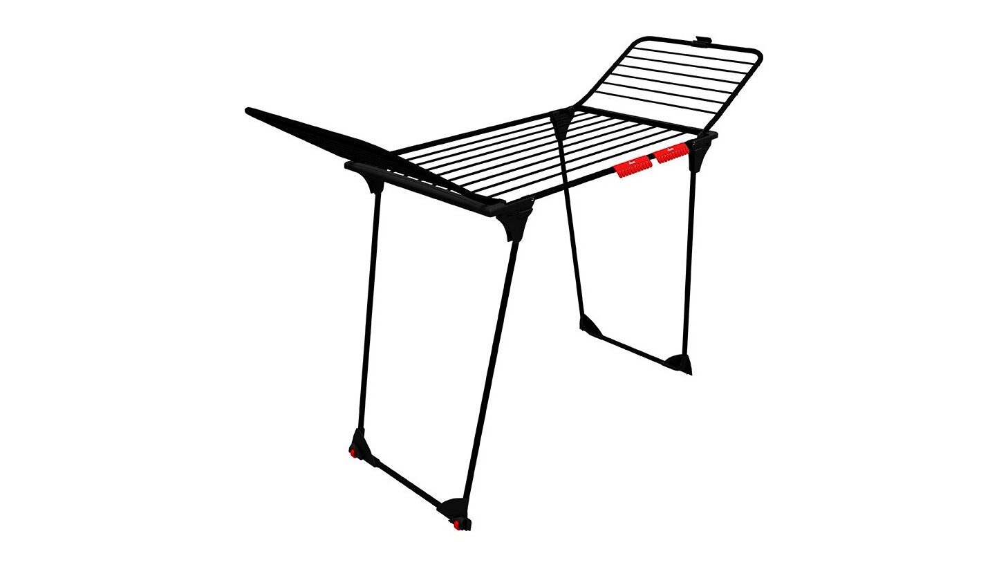 A Vileda King szárítógép praktikus és kézreálló eszköz a könnyű szárításhoz minden otthonban. Most elegáns matt fekete kivitelben. az erős alumíniumhuzalok megakadályozzák a szennyes összenyomódását. A ruhaszárító az extra biztonságos és erős lábaknak köszönhetően masszív és stabil. Nagy előnye a kerekek, a szárnyzár és az apróságok tartója, amely lehetővé teszi, hogy könnyen és gyorsan felakaszthassa a zoknikat vagy alsóneműket, tűk nélkül. műszaki paraméterek és specifikációk: biztonsági zár az oldalsó szárnyakon.