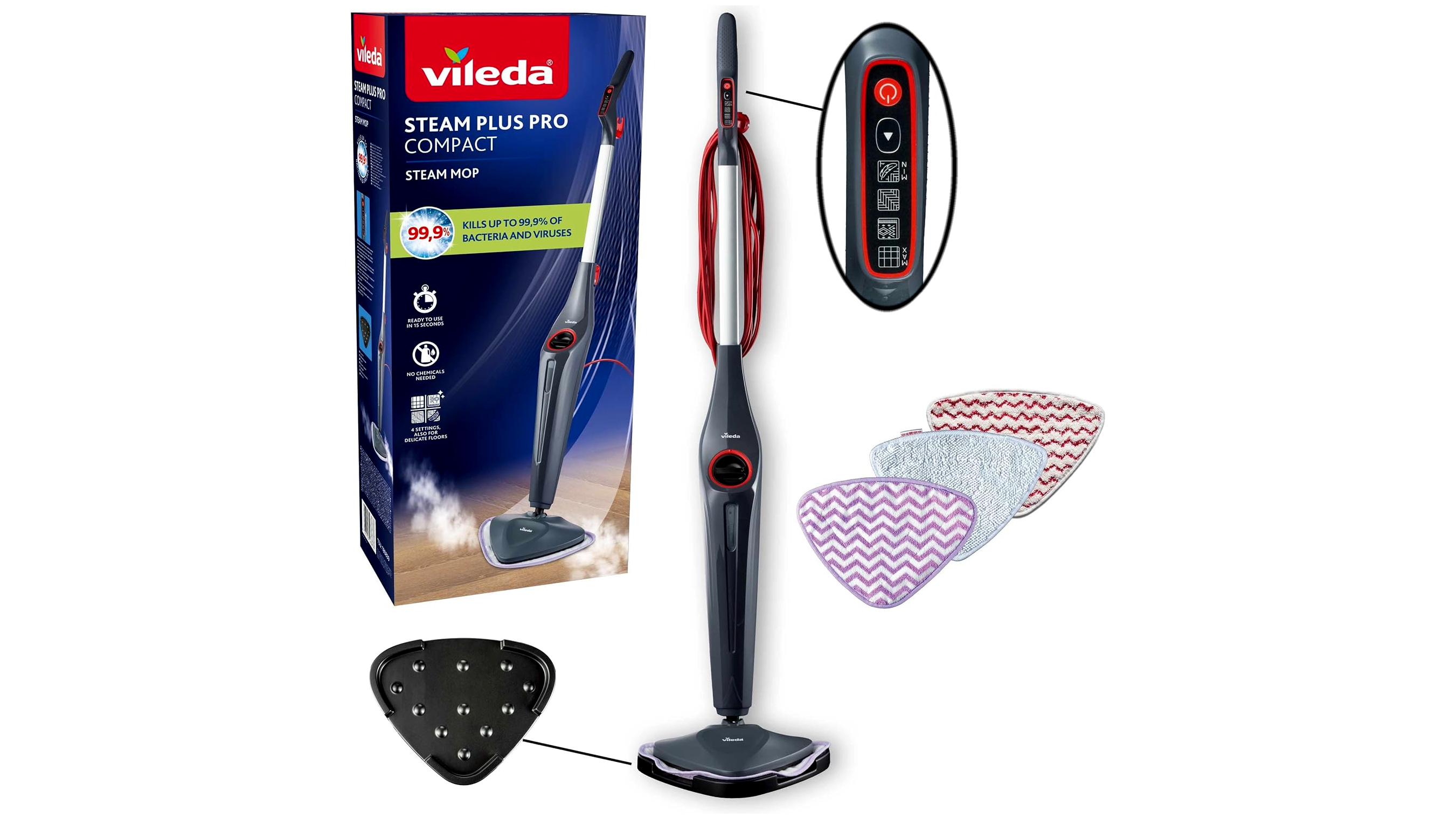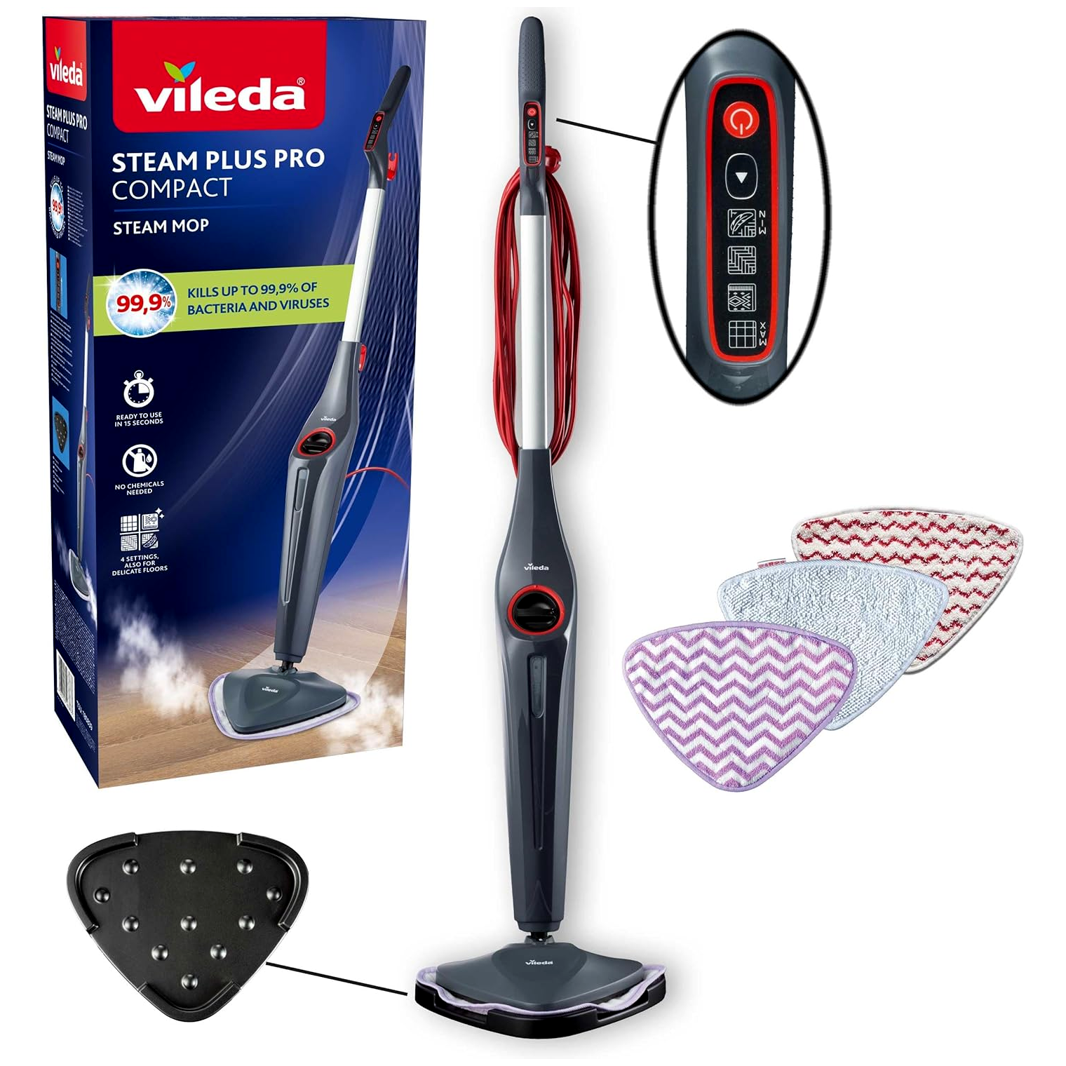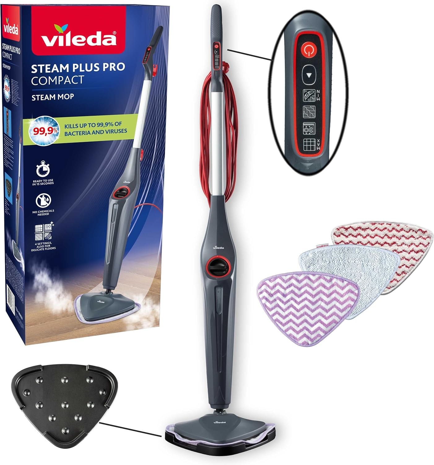 Vileda Steam Plus Pro Compact Gőztisztító készülék 1550 Watt - Szürke/Fehér
