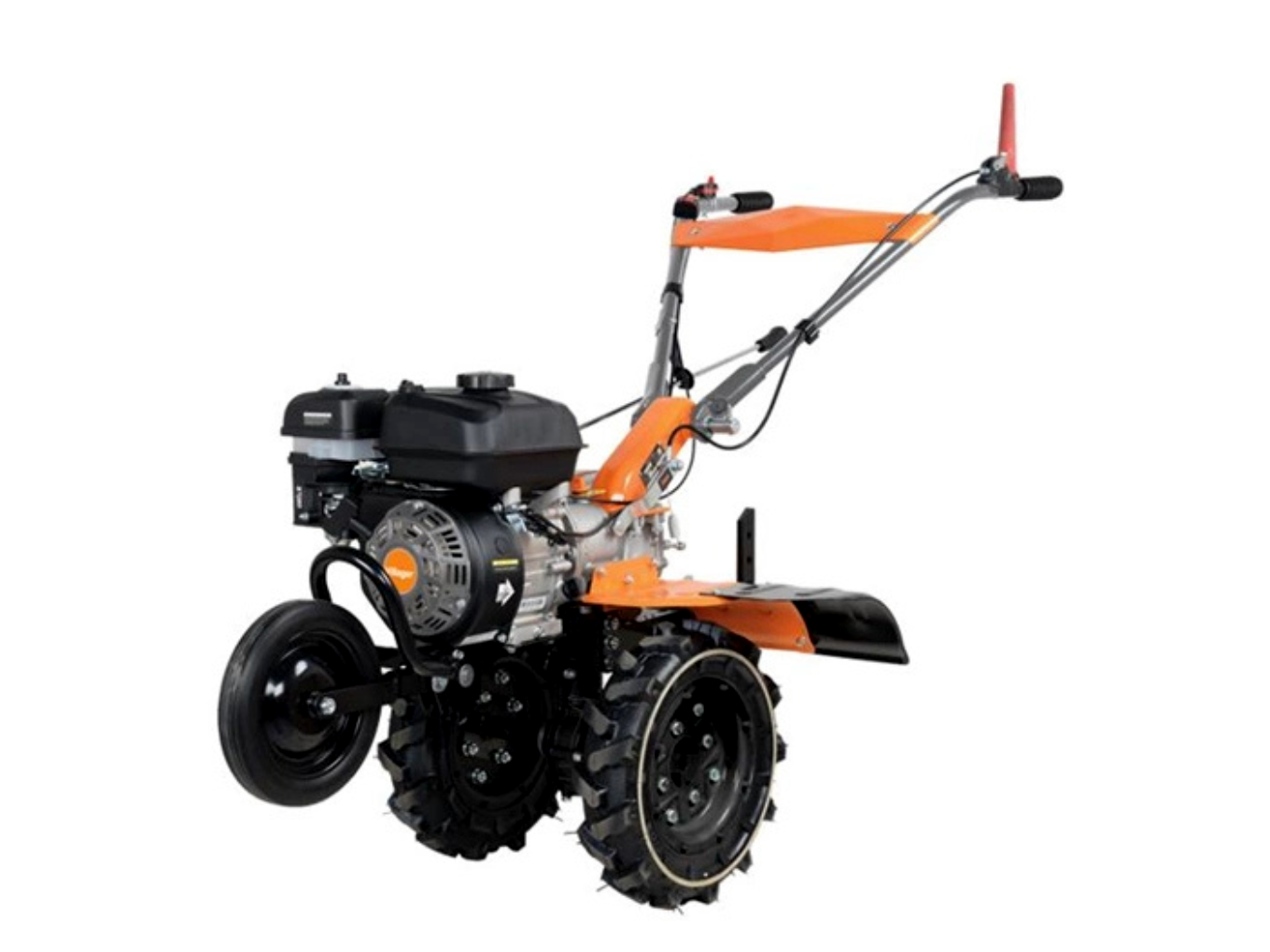 A gumiabroncsos, 4.00–8 méretű kerekek jó tapadást biztosítanak, így a gép kevésbé hajlamos az oldalirányú elmozdulásra, és pontosabban tartható a kívánt haladási irány. Az első kerék nagyban megkönnyíti a gép mozgatását a munkahelyre és onnan vissza, illetve forduláskor is segít a kezelhetőségben.
