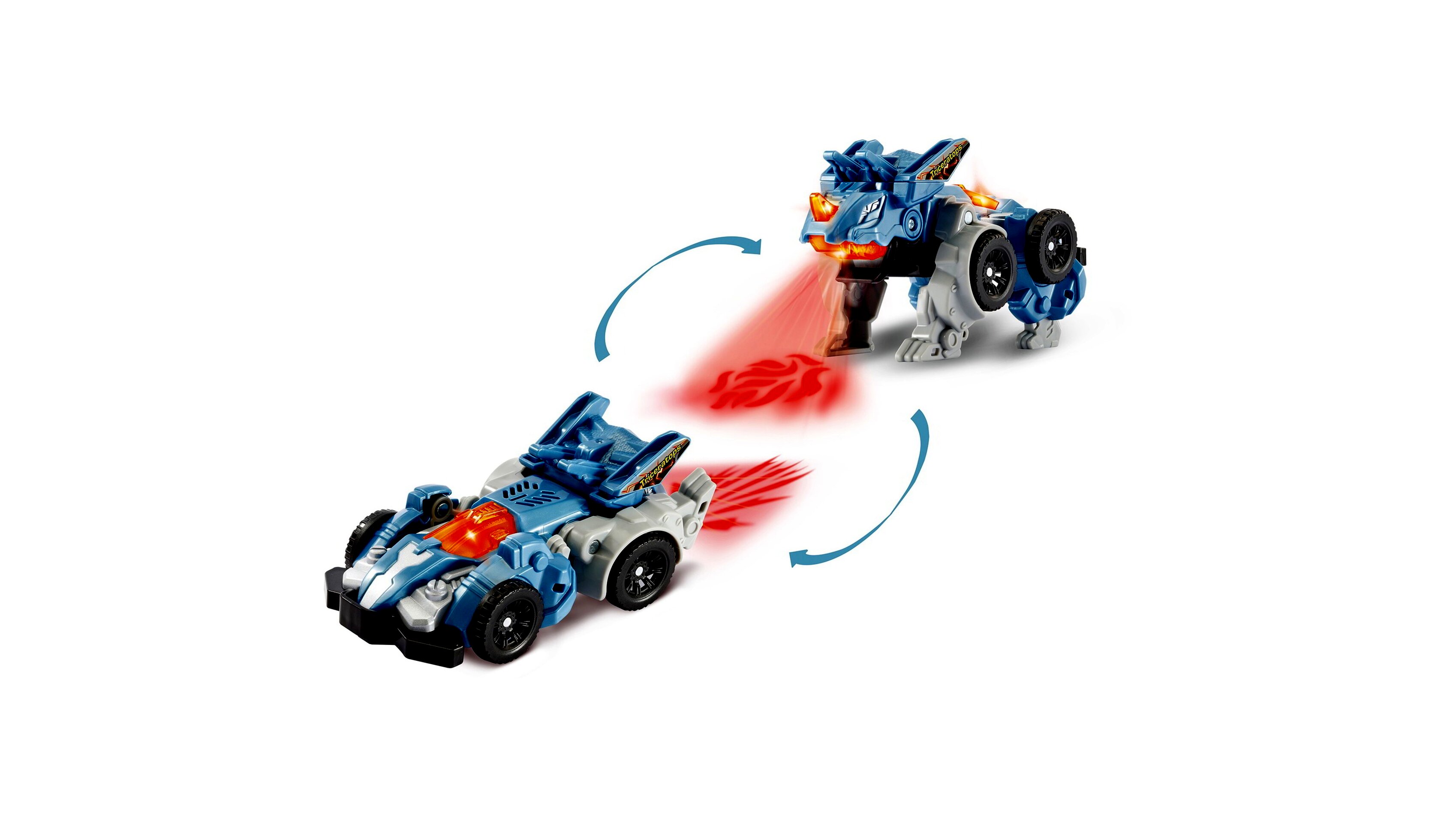 Ez a Triceratops tüzet „köp” és látványos vetítéssel kápráztat el. A dínó módban lángokat vetít, míg jármű módba kapcsolva villámokat. Nyomja meg a fejét, és aktiválja a menő hang- és fényhatásokat, amelyek tovább fokozzák az élményt.