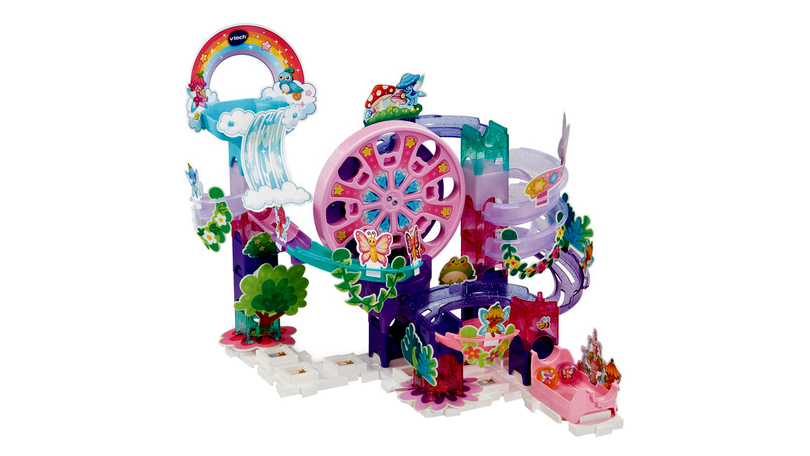 A VTech világszerte ismert az oktató- és fejlesztőjátékairól, amelyek játékos formában vezetik be a gyerekeket a tudomány, a technika és a kreatív gondolkodás világába. A Marble Rush / Márvány rohanás sorozatot kifejezetten úgy tervezték, hogy moduláris legyen: a különböző készletek összeépíthetők, így a gyerekek egyre összetettebb, magasabb és hosszabb pályákat alkothatnak. A tündérkertes téma különösen vonzó azoknak a gyerekeknek, akik szeretik a mesés, színes világokat – miközben ugyanúgy átélhetik a klasszikus golyópályák izgalmát.