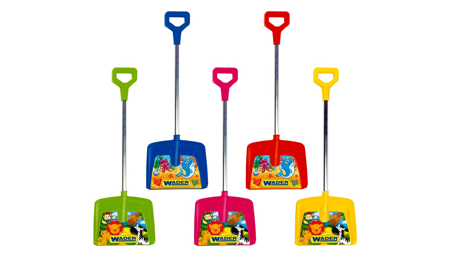 Vidám mintás, 70 cm hosszú lapát erős fém nyéllel és műanyag fogantyúval. A lapát tökéletes a homokozóban, a kertben és a strandon is.