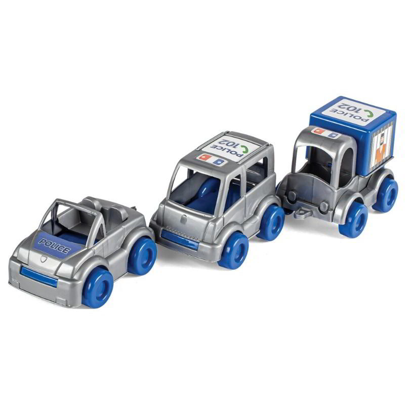 A gyerekek imádni fogják a sokszínű játéklehetőségeket, amelyeket ez a rendőrségi jármű szett kínál. A készlet három különböző típusú autót tartalmaz: egy nyitott tetejű rendőrautót, egy zárt tetejű rendőrautót és egy kisteherautót. Mindezek az eszközök izgalmas és változatos játékra ösztönöznek, miközben segítenek fejleszteni a gyermek kreativitását és fantáziáját.