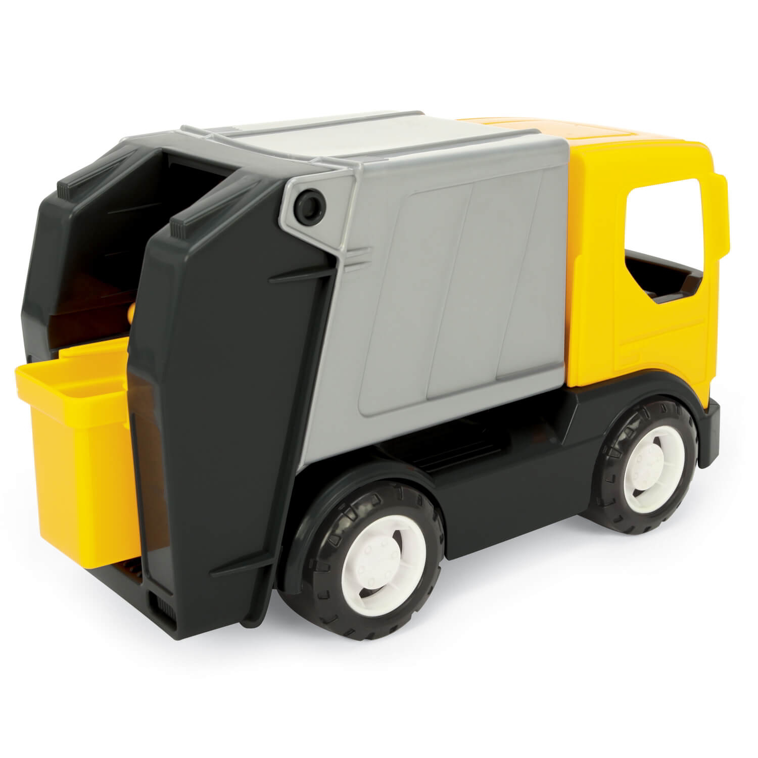 A Wader Magic Tech Truck termékcsaládjába tartozó, 28 cm hosszú kukásautó rendkívül strapabíró és minőségi műanyagból készült, így bármilyen időjárási körülmény között használható kint és bent egyaránt. A szeméttartály levehető, a járművet pedig mozgatható emelővel készítették, hogy a kuka tartalmát bele is lehessen borítani.