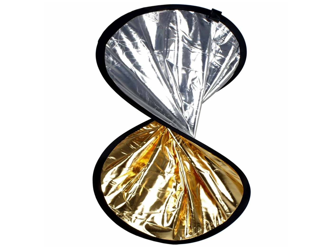 A Double Reflector két különböző visszaverő felületet biztosít: az ezüst felület a hideg fényt és az arany felület a meleg színeket. A 30 cm átmérőjű Reflektor ideális lövöldözős asztalokon, terméktányérokon stb. való használatra. Az összehajtható reflektort hordtáskában (kb. 15 cm) összehajtva szállítjuk.