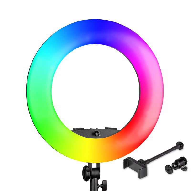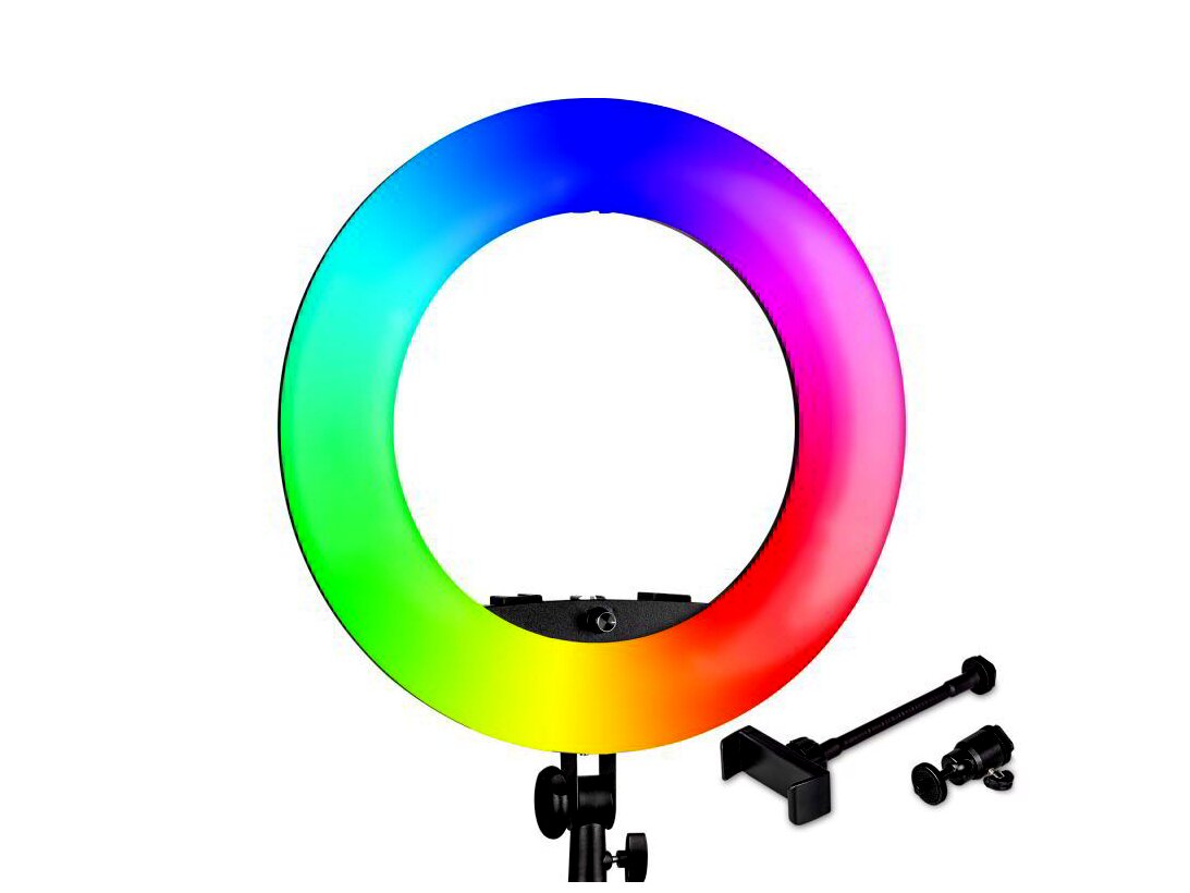 A fejlett RGBWW LED technológia a hideg–meleg fehér LED-eket színes LED-ekkel kombinálja, így egyaránt alkalmas semleges beauty fényhez és látványos, színes hangulatfényekhez. A gyűrűs elrendezés lágy, egyenletes fényt ad, csökkenti az árnyékokat és jellegzetes, kör alakú csillanást hoz létre a szemben – ideális portréhoz, sminkhez és közeli felvételekhez.