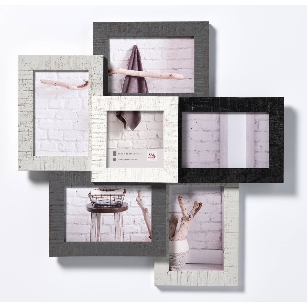 Ismerje meg a Walther Home képkeretet, amely tökéletes otthona díszítéséhez, modern és elegáns kialakítással! Ez a képkeret 5 darab 13x18 cm-es és 1 darab 13x13 cm-es fotóhoz készült, így több szép emléket helyezhet el egymás mellett.