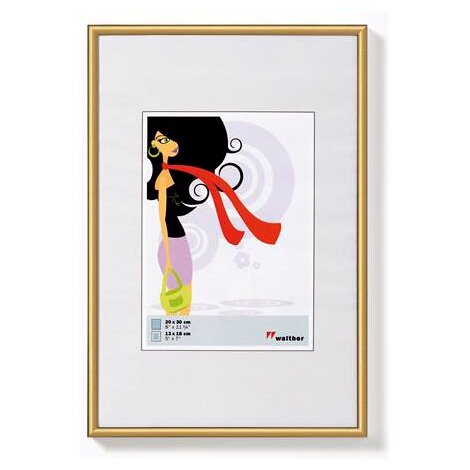 vékony, gömbölyű léccel fémes hatású festéssel közepén perforációval, melyet kiemelve a megmaradt rész paszpartuként használható hátlapja farostlemez, kitámasztóval fektethető és állítható, valamint akasztható elhelyezéssel arany színben