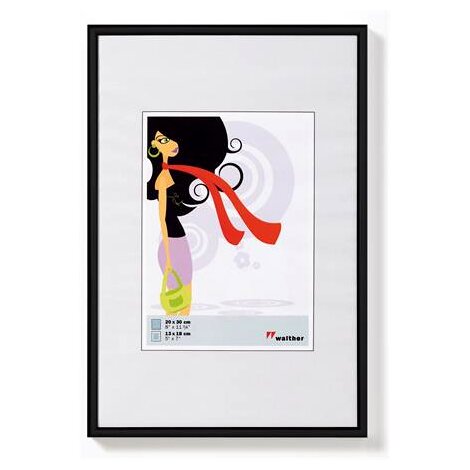 vékony, gömbölyű léccel fémes hatású festéssel közepén perforációval, melyet kiemelve a megmaradt rész paszpartuként használható hátlapja farostlemez, kitámasztóval fektethető és állítható, valamint akasztható elhelyezéssel fekete színben