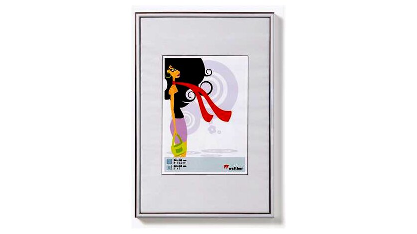 vékony, gömbölyű léccel fémes hatású festéssel közepén perforációval, melyet kiemelve a megmaradt rész paszpartuként használható hátlapja farostlemez, kitámasztóval fektethető és állítható, valamint akasztható elhelyezéssel ezüst színben