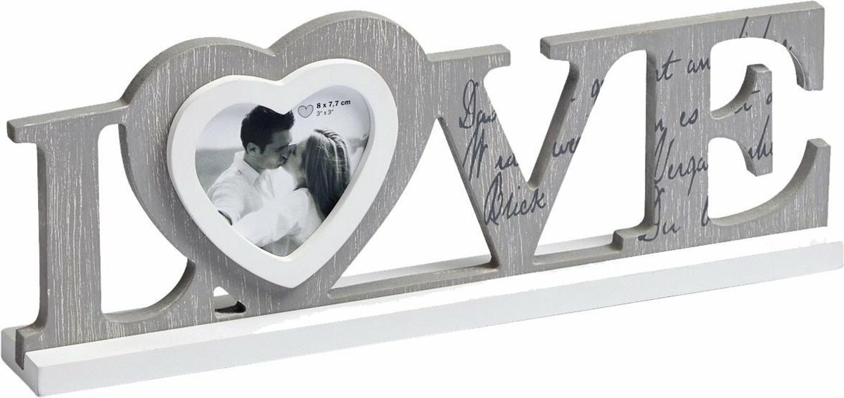 - Széles profillal és dekoratív betűkkel; is, LOVE-betűzés szív alakú kerettel