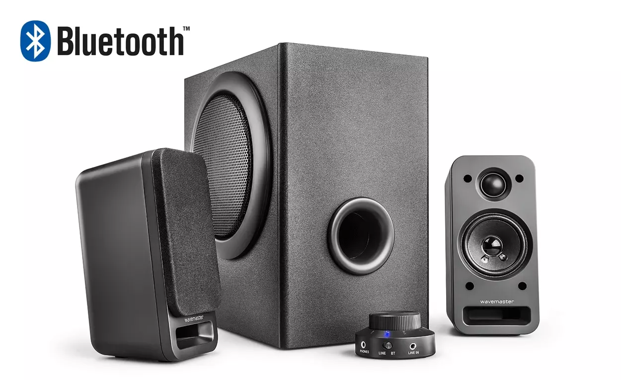 Fedezd fel a WaveMaster MX3+ BT, egy elegáns és modern, 2.1-es sztereó hangszórórendszert, amely újraértelmezi a hangminőséget. A Bluetooth® technológia révén a zenehallgatás soha nem volt ilyen egyszerű és kényelmes. Zenelejátszás közvetlenül a mobiltelefonról, táblagépről vagy laptopról, mindez vezeték nélküli szabadsággal kombinálva.