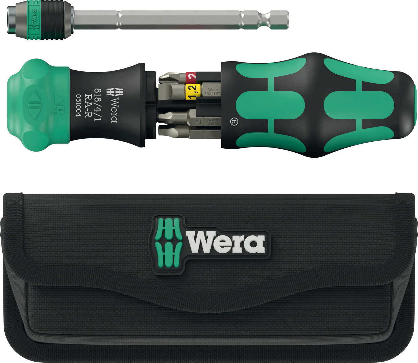 A 6 darabos Wera Kraftform Kompakt 26 RA-R szett tartalmaz egy racsnis kézi csavarhúzót és hat különböző, 25 mm hosszú BiTorsion bittet. A kézitartó hatszögű foglalattal rendelkezik, mely minden 1/4" hatszögű meghajtással rendelkező bithegyhez alkalmas. A gyorscserés Rapidaptor tokmány lehetővé teszi a gyors bitcserét, további szerszámok nélkül, és biztos tartást kínál a biteknek. A teleszkópos penge a markolatba visszahúzható, így szűk helyeken is könnyen használható.