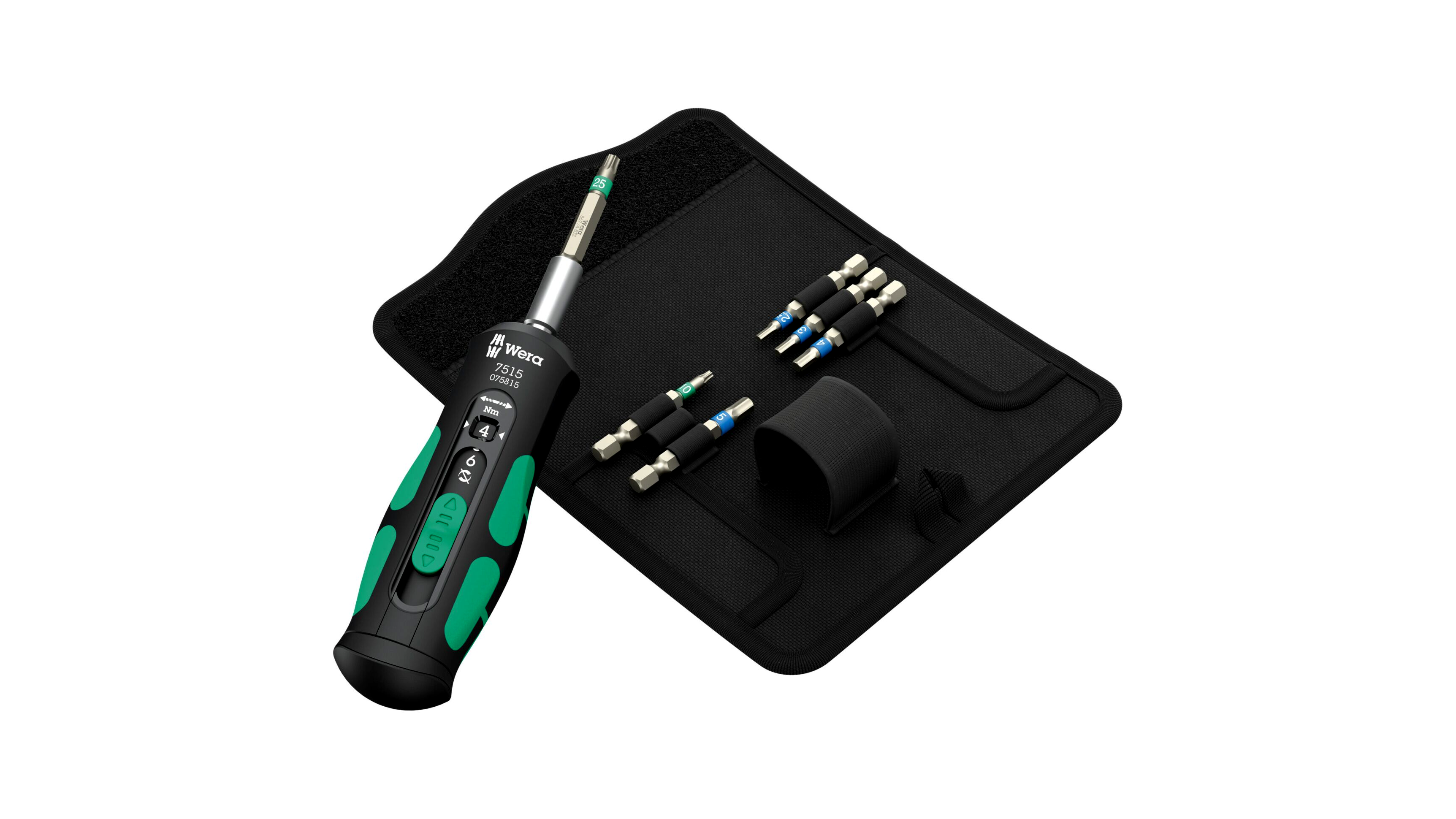 Biztonságos átcsúszási nyomatékmechanizmus gyors óramutató járásával megegyező/ellentétes beállítással és öt választható meghúzási nyomatékkal (2,0; 3,0; 4,0; 5,0; 6,0 Nm) és egy rögzített pozícióval (Torque Lock) a korlátlan lazítási és meghúzási nyomatékhoz. Gyorskioldó tartó a nagy robusztusságért. Ideális kerékpáros műveletekhez. Alkalmas 1/4"-os külső hatlapú meghajtású bitekhez. 6 szívós bit (50 mm hosszú), a bitek profilja és mérete könnyen felismerhető a Wera Take it easy Tool keresőnek köszönhetően színkódjaival és címkéivel.